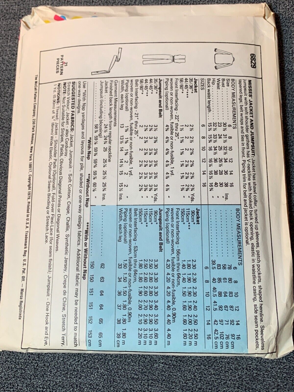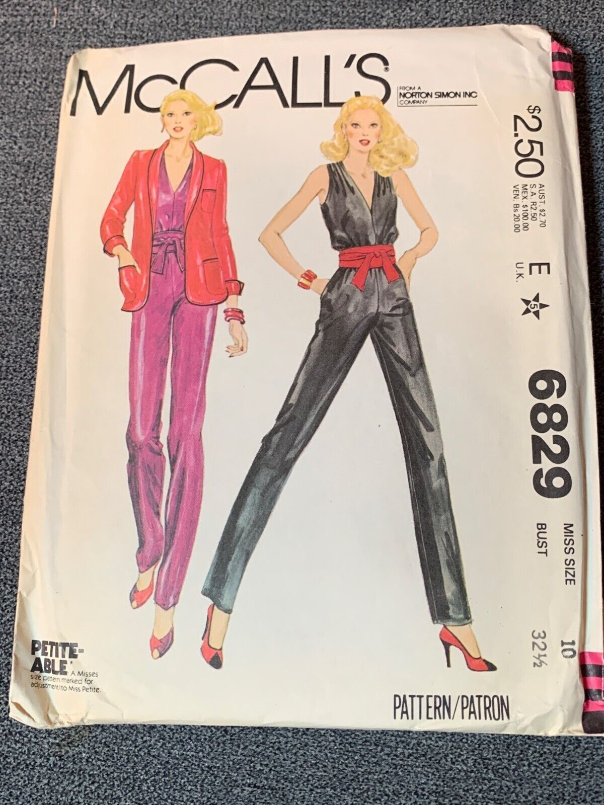 Vintage McCalls Sewing Pattern 6829 Misses Jacket & Jumpsuit Size 10 1979 Uncut