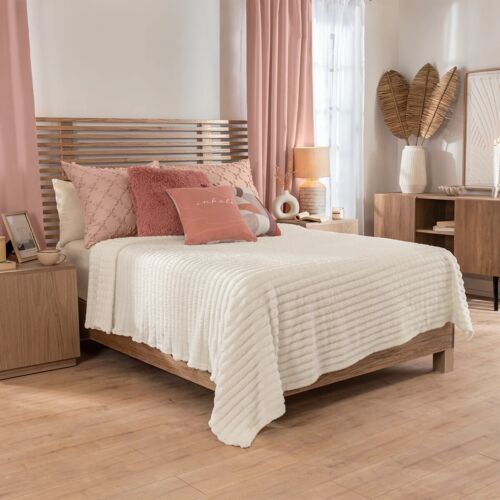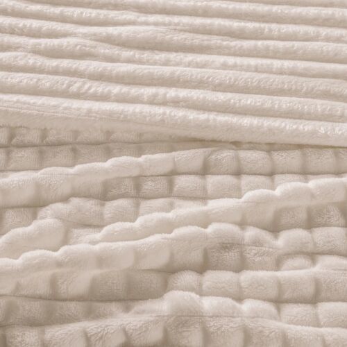 BEIGE REVERSIBLE SOLID COLOR EMBOSSED LIGHT BLANKET SOFTY AND WARM QUEEN SIZE