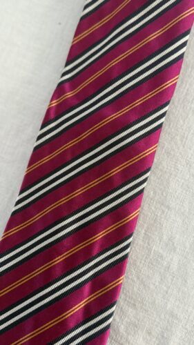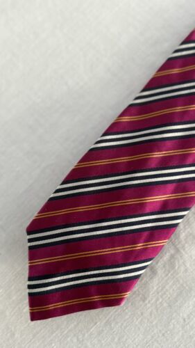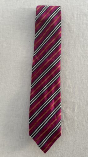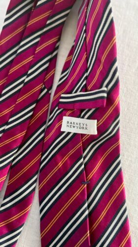 Barney’s New York Men’s Silk Necktie Pink Navy Gold White Stripe