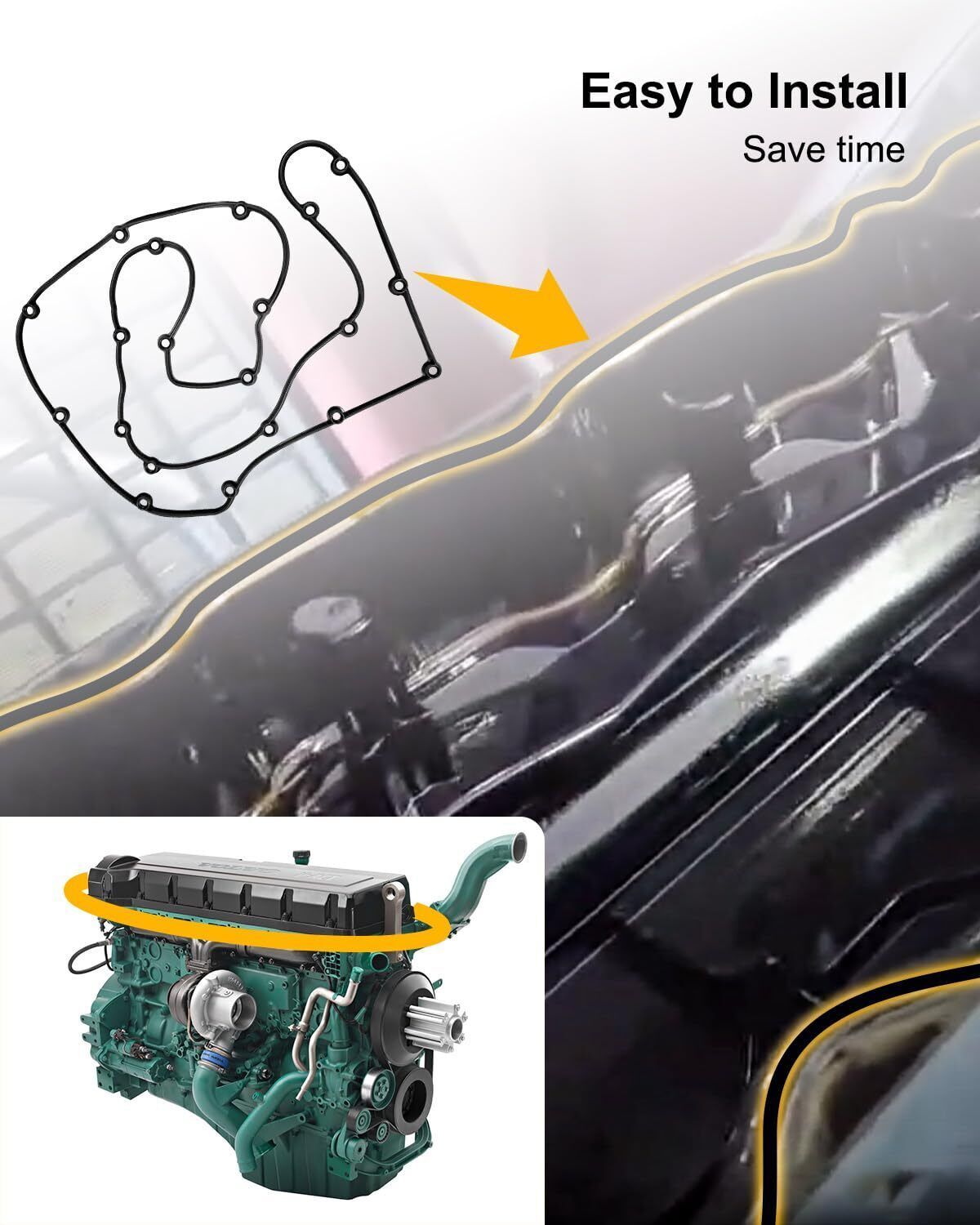Efficient Sealing: Effectively prevents oil leakage, keeps the engine compartment clean, avoids oil accumulation, and ensures stable internal pressure of the engine Reliable and Durable: Engine valve cover gasket set is made of high-quality rubber material, which is more resistant to high temperature and corrosion, ensuring long-term use without aging and providing a long-lasting sealing effect Vibration and Noise Reduction: alve Cover Gasket has good buffering performance, can absorb the vibration and noise generated by the engine running, improve driving comfort, and reduce the impact of engine noise on the vehicle interior environment Compatible Models: Fit for Volvo D13 Engines Mack MP8 Engines Replace 22777560, please check if it is compatible with your vehicle before purchasing Simple Installation: Direct replacement, no professional skills or tools required, reducing maintenance costs and saving maintenance man-hours, product includes: 1 X Valve Cover Gasket Set