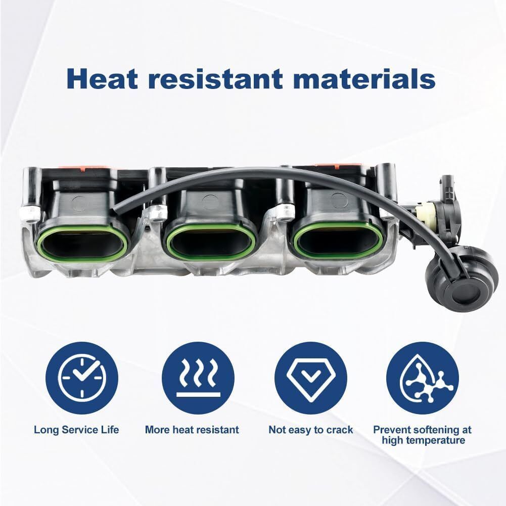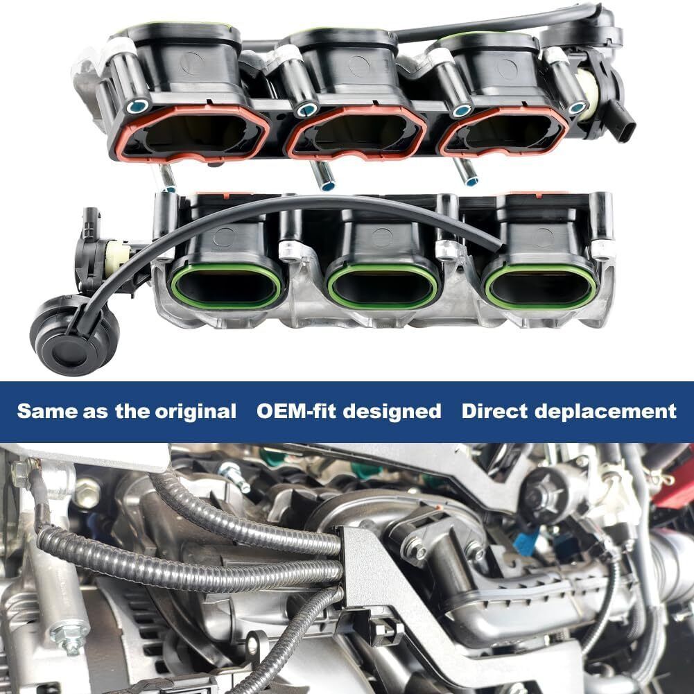 OE Number: Replacement for Left Side: 06E133109, 06E133109AF, 06E133109AL, 06E133109AB, 06E133109AS, 06E133109AR, 06E133109AP, 06E133109AC. Right Side: 06E133110, 06E133110AB, 06E133110AC, 06E133110AF, 06E133110AL, 06E133110AP, 06E133110AR, 06E133110AS, 06E133340E, 06E133340C Fit The Following Vehicle: Compatible with 2012-2015 Audi A6 Quattro 3.0L V6, 2014-2015 Audi A7 Quattro 3.0L V6, 2013-2016 Audi Q5 3.0L V6, 2011-2015 Audi Q7 3.0L V6, 2010-2016 Audi S4 3.0L V6, 2010-2016 Audi S5 3.0L V6, 2014-2014 Audi SQ5 3.0L V6 Long Service Life: intake manifold made of quality material, good aging resistance, prevent high temperature softening, has a long service life, timely replacement to restore driving ability Same as the Original: This part was specifically designed to match the performance of the OE and manufactured in strict accordance with OEM specifications, stable characteristics and reliability Easy to Install: remove the two clamps, replace the air inlet hose and then put on the clamps and tighten the screws, or go to the website to watch the video before installation
