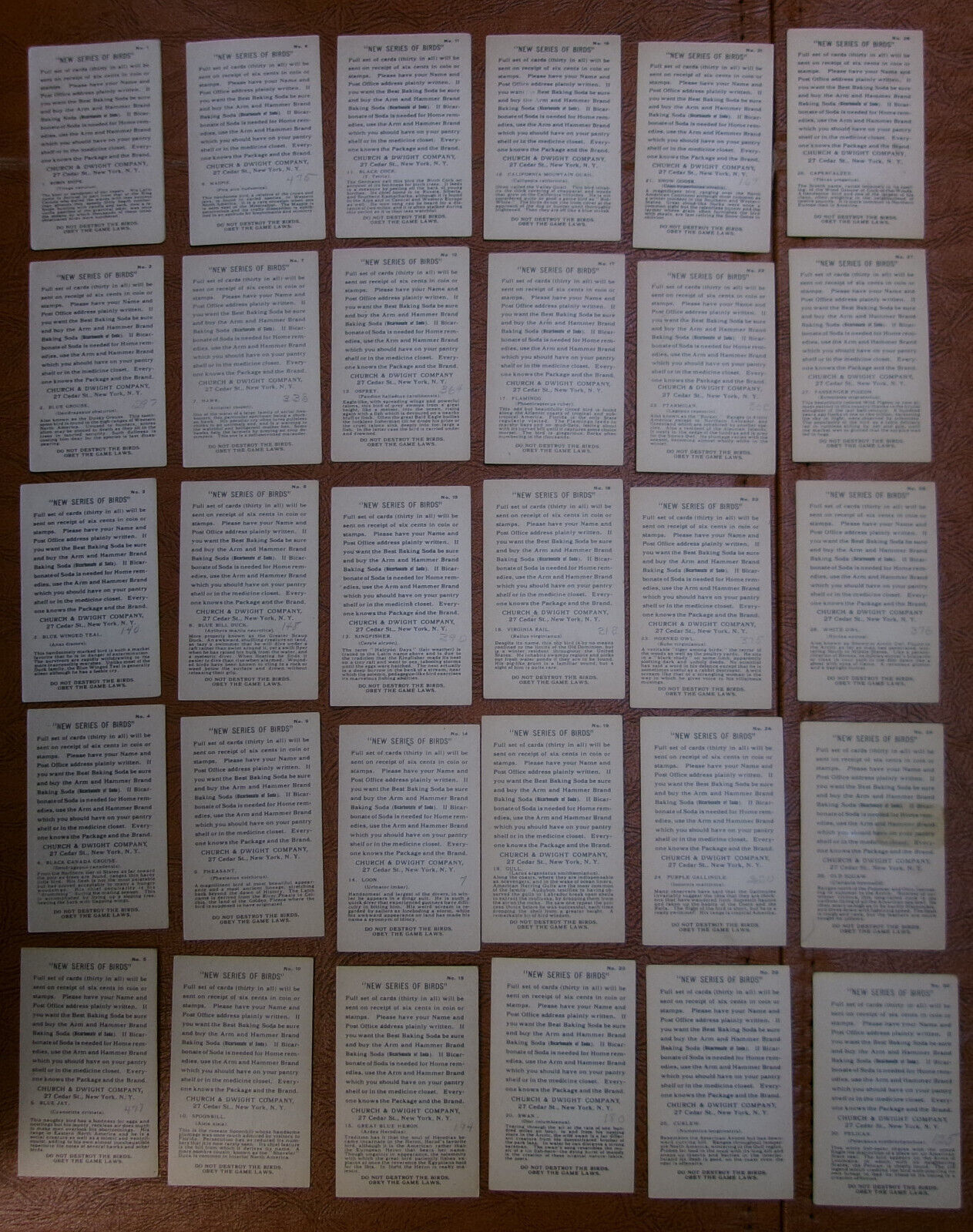 ARM & HAMMER BIRD CARDS, New Series, 1908 Complete Set #1-#30, Church & Dwight