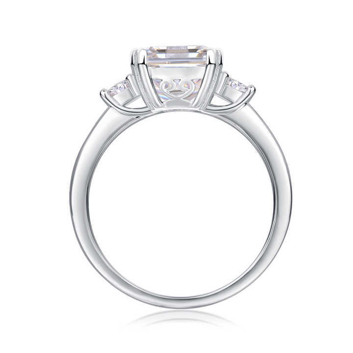 Emerald Cut Moissanite Diamond Ring 925 Silver Solitaire Engagement Ring For Her