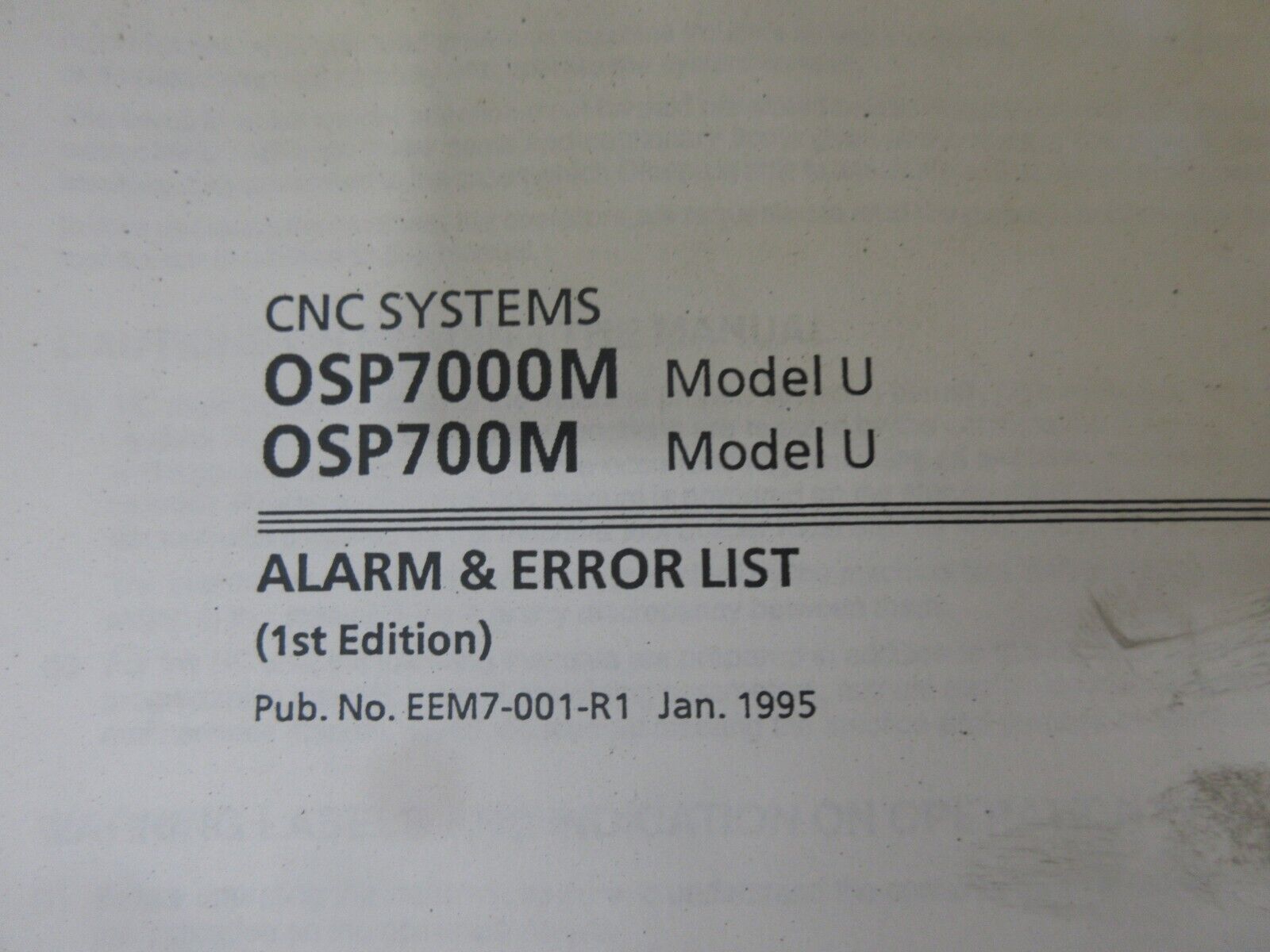 Okuma OSP7000M Modèle U OSP700M Alarme Et Erreur Liste 1ST Édition EEM7-001-R1