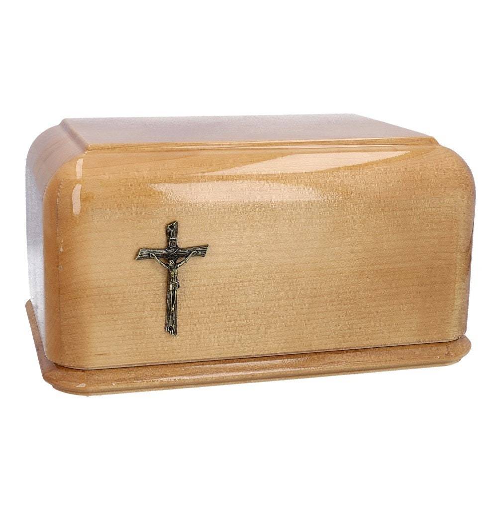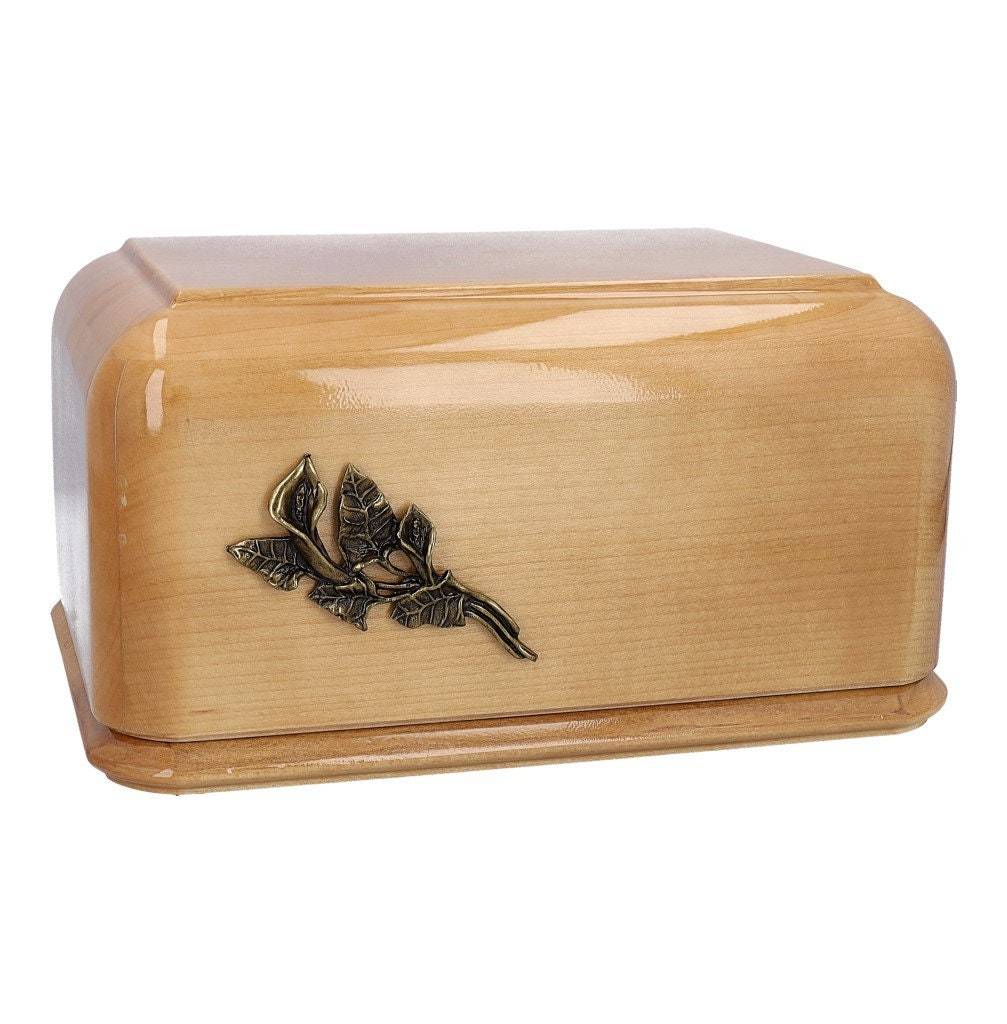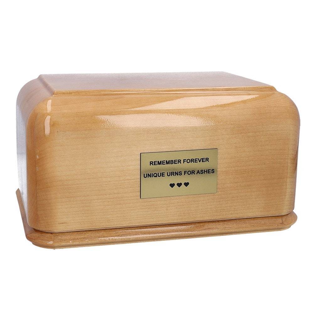 This stunning wood cremation urn is the perfect way to honor the memory of a loved one. The urn has a light color finish that gives it a warm and inviting appearance, making it a beautiful addition to any memorial space. The urn is made of high-quality wood, which is known for its durability and resistance to wear and tear.