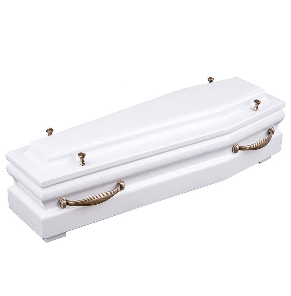 What better than a coffin could be a better way to preserve the cremains of a beloved one. This cremation urn just gives you that. It is made in the shape of a coffin. It is an infant wood casket coupled with rose gold handles and cross.