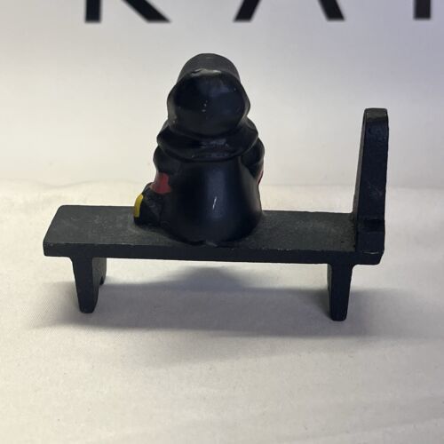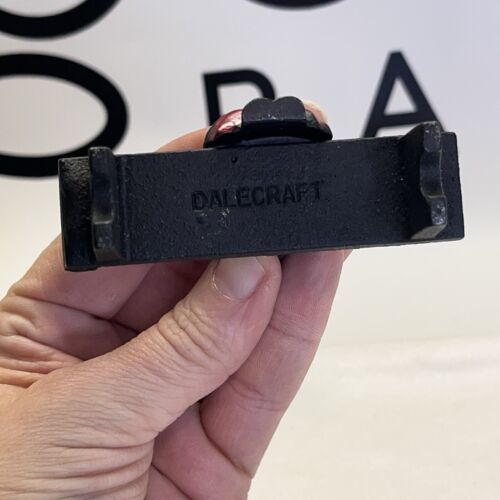 This vintage Dalecraft figurine features a charming Amish girl sitting on a bench. The hand-painted cast iron figure measures 2.75 inches in length and weighs 4.8 ounces. The item is small in size and comes as a single pack. The black color and intricate details make it a perfect decorative collectible for any home. The figurine is missing an hourglass, which adds to its vintage charm.