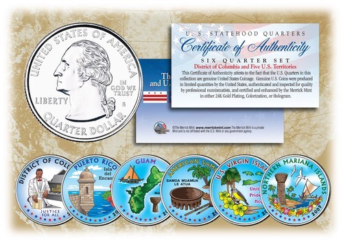 NFL TEAM LOGOS COMPLETE Colorized 32-Coin Set Statehood Quarters w/Display Box