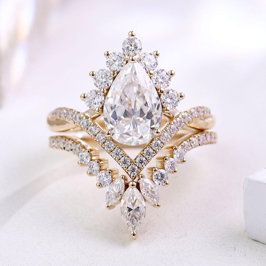 Pear Moissanite Wedding Ring Set 925 Silver Half Eternity Wedding Stacking Band 925 Silver Moissanite Diamond Engagement Ring 925 Silver 14k Plated Gold Plated Engagement Stacking Ring Set