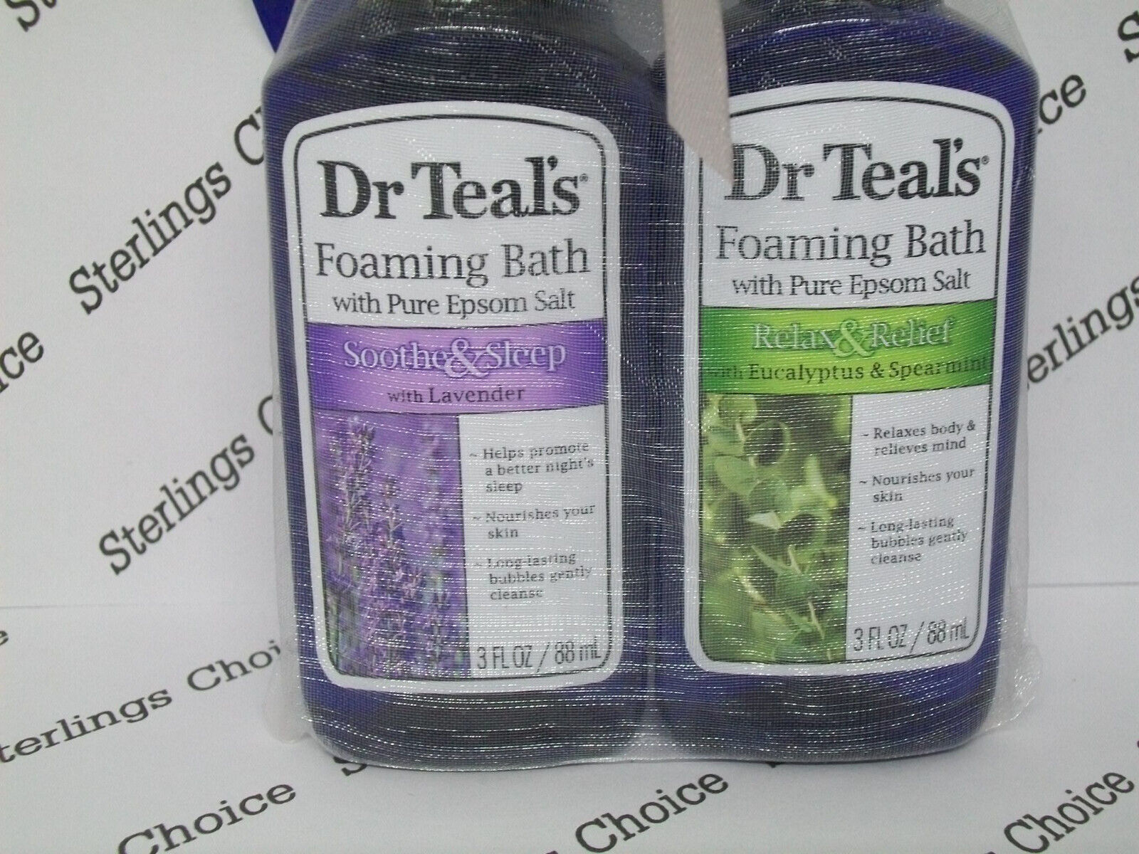 Dr Teals Foaming Bath with pure Epsom Salt and Essential Oils - Soothe Sleep with lavender / Relief with Eucalyptus and Spearmint. 3oz each bottle.