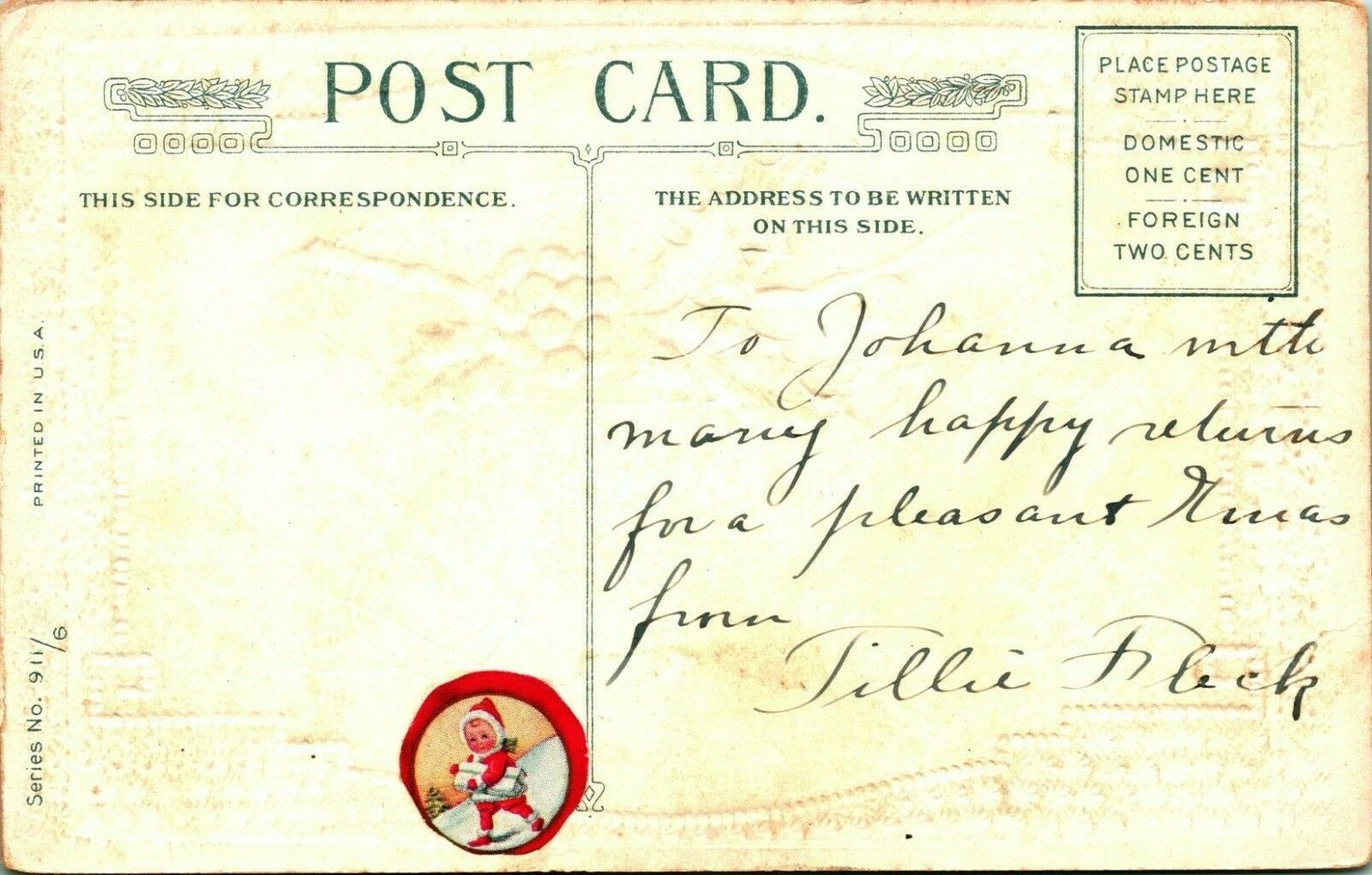 Winsch Back Merry Christmas Embossed Holly Twig Scroll UNP DB Postcard Z12