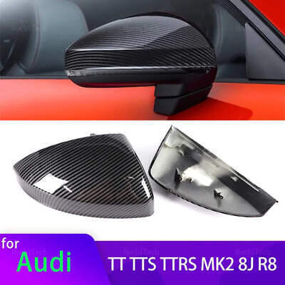 Upgrade your Audi TT, TTS, RS, or R8 with these premium carbon fiber glossy black side mirror covers. Designed for a sleek and sporty appearance, these replacement mirror caps are crafted from high-quality ABS material for durability, impact resistance, and a lightweight finish. The precision-fit design ensures compatibility with Audi TT MK3, TTS, RS MK3, and R8 models from 2015 to 2023, offering an effortless installation process. Perfect for adding a stylish carbon fiber look without compromising performance, these mirror covers are an ideal choice for enhancing your car?s aesthetic appeal. NEW carbon fiber gloss black mirror covers designed as direct replacements for Audi TT MK3, TTS, RS MK3, and R8 models from 2015 to 2023. Made from high-quality ABS material, offering excellent durability, impact resistance, and a lightweight design that withstands weather and road conditions. Sleek carbon fiber finish with a glossy black look enhances the sporty appearance of your car, adding a modern and luxurious touch. Easy to install with a plug-and-play design?no modifications required, providing a seamless fit for vehicles without lane assist systems. Package includes NEW left and right mirror covers, detailed instructions, and installation tools, making setup quick and hassle-free.