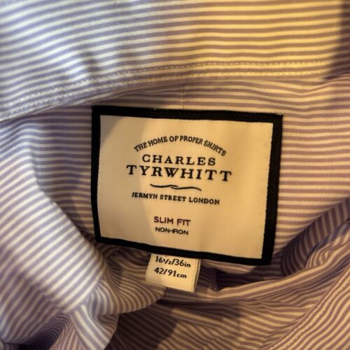 Charles Tyrwhitt Button Up Shirt Men's 16 1/2 36in Purple Slim Fit Pinstripe Top