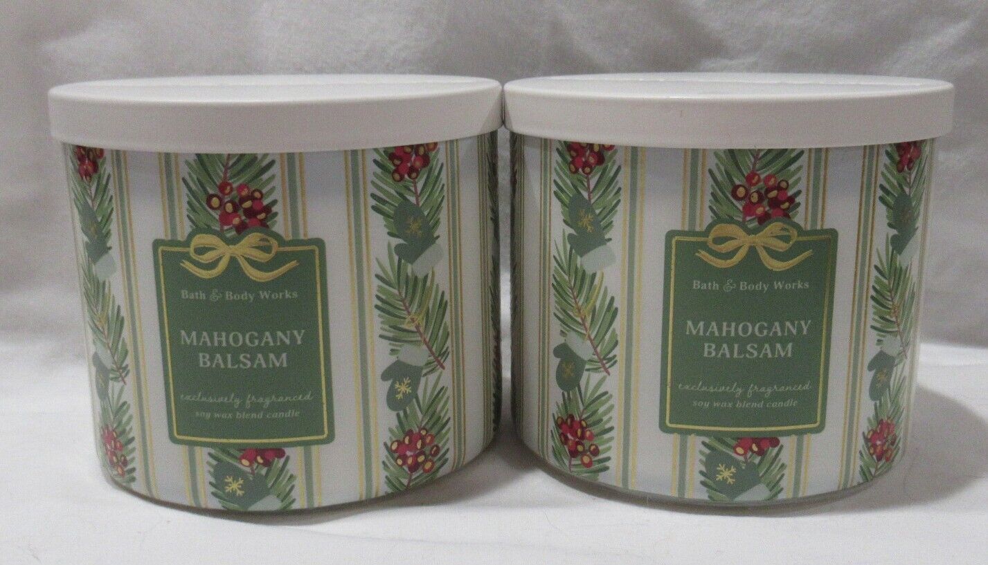 Bath & Body Works 3-wick Scented Candle Lot Set of 2 MAHOGANY BALSAM