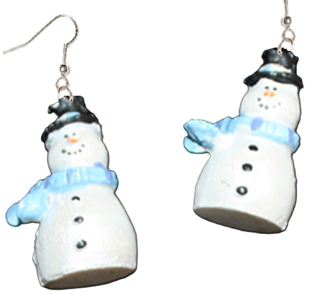 3-D SNOWMAN Funky EARRINGS Winter Christmas Charm Holiday Fun Novelty Jewelry-G