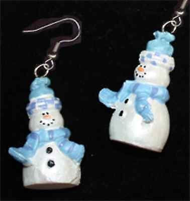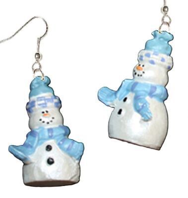 3-D SNOWMAN Funky EARRINGS Blue White Winter Holiday Christmas Novelty Jewelry-F