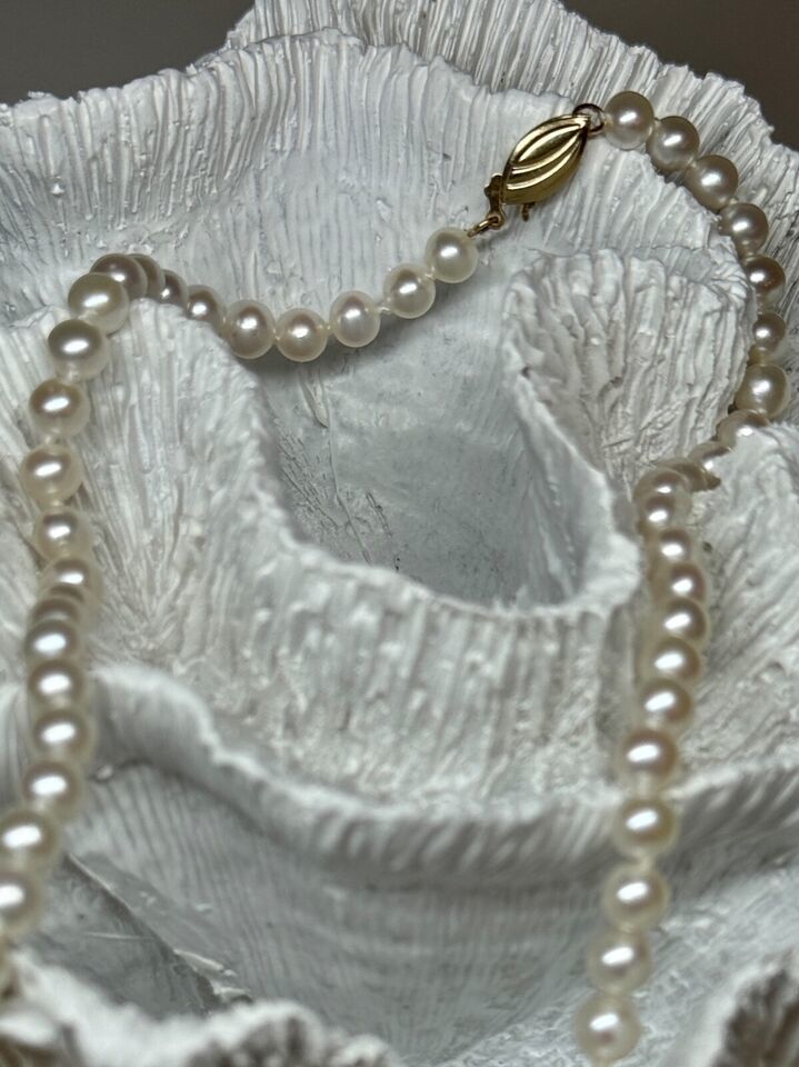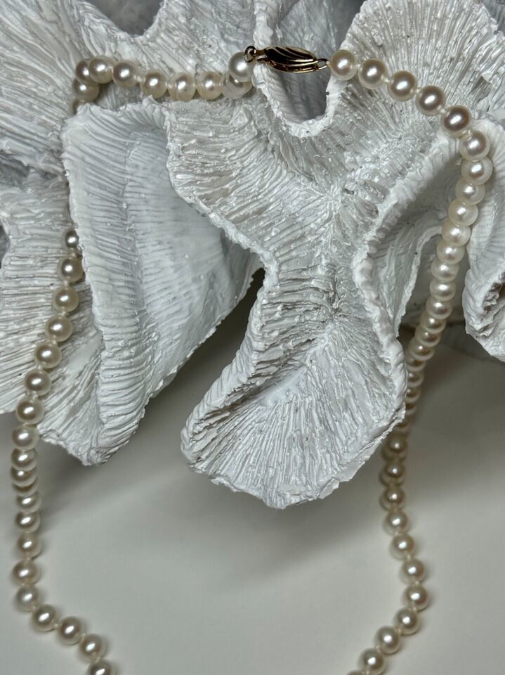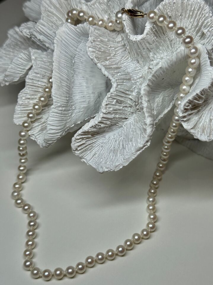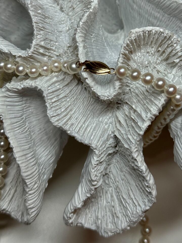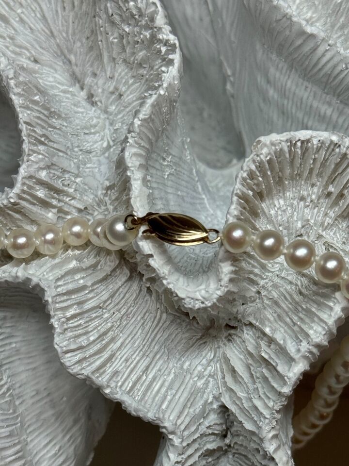 14K YELLOW GOLD CLAPS FRESH WATER PEARL NECKLACE 18 Inch