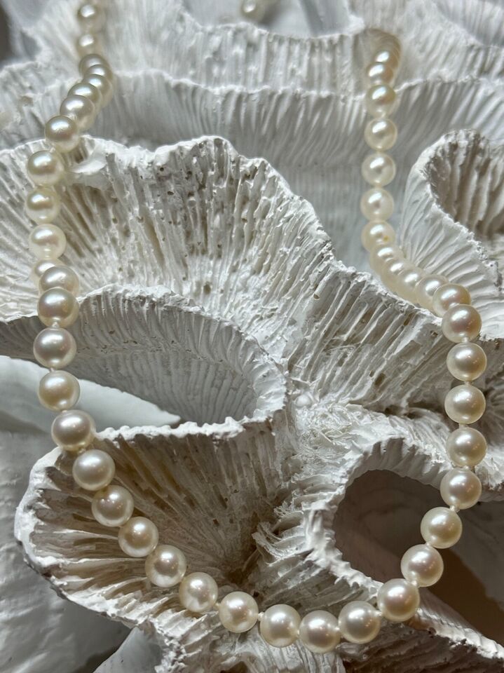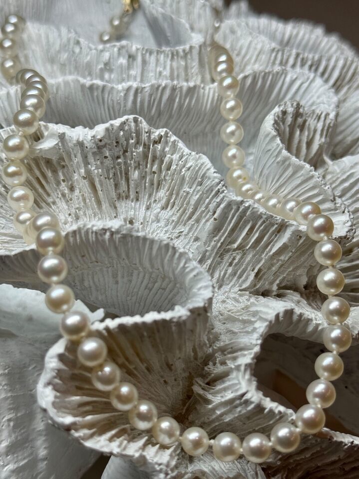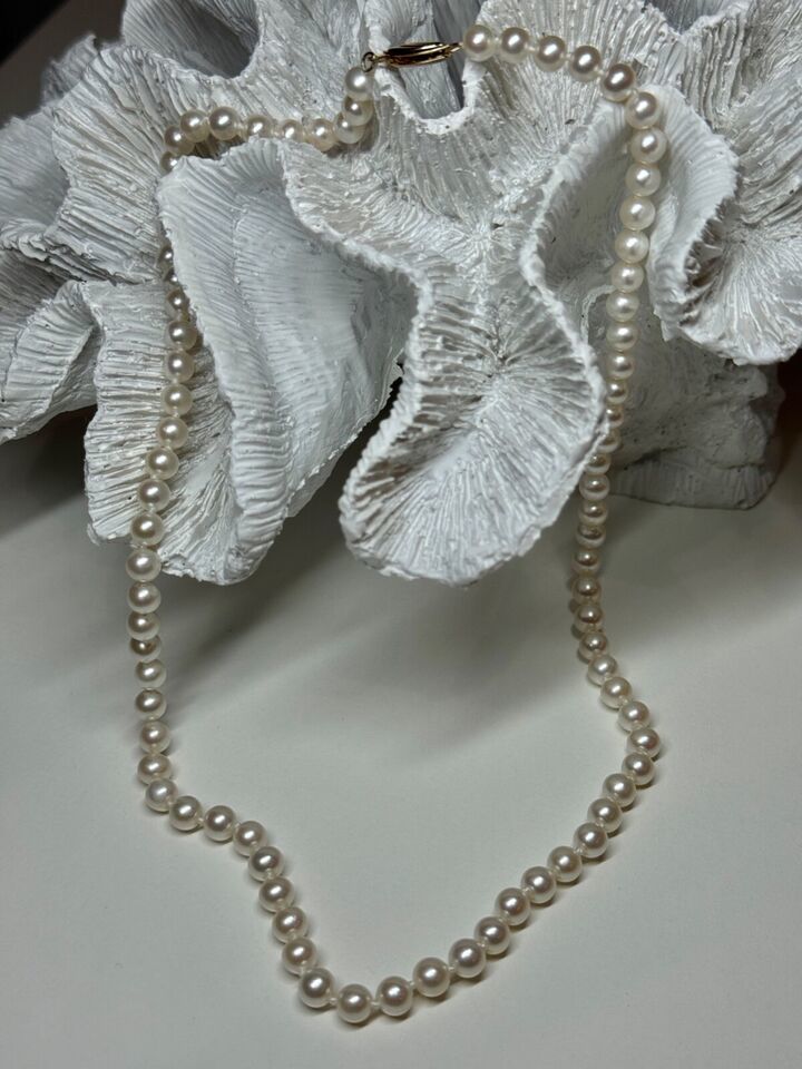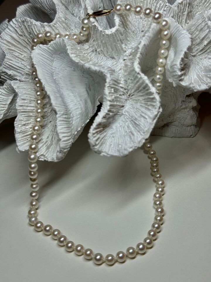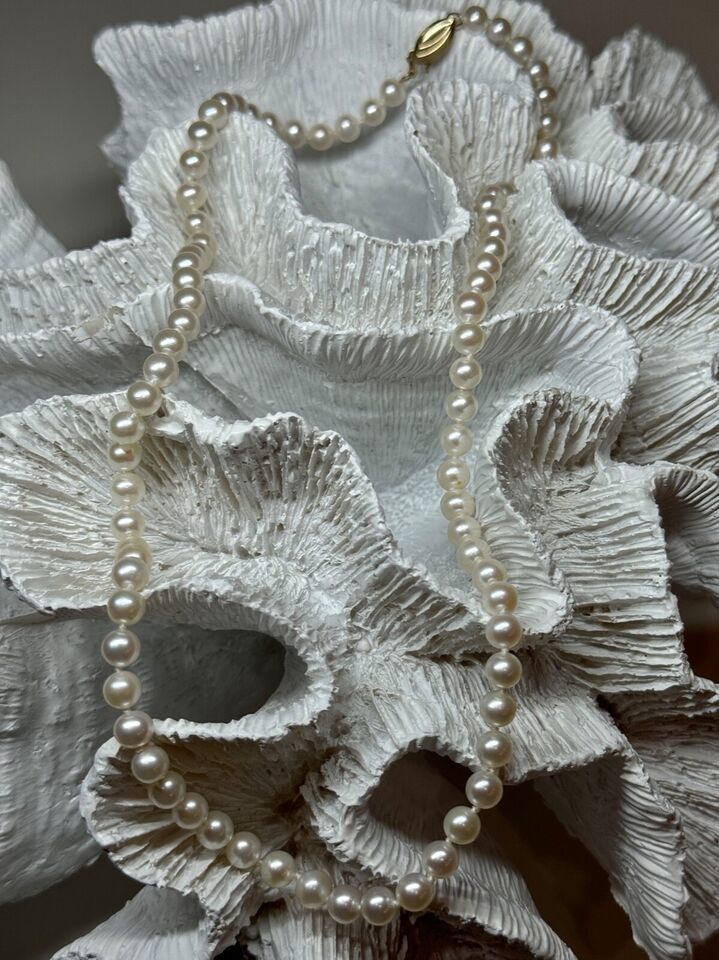 14K YELLOW GOLD CLAPS FRESH WATER PEARL NECKLACE 18 Inch