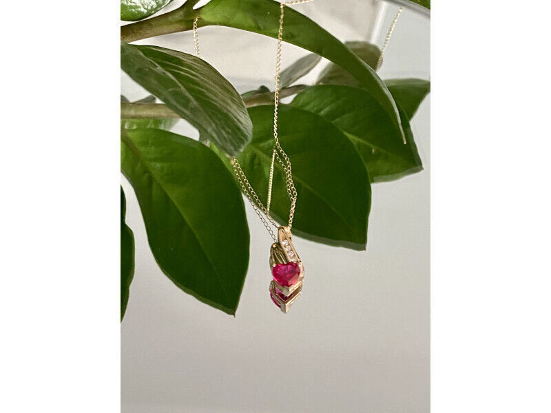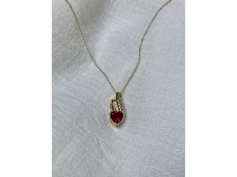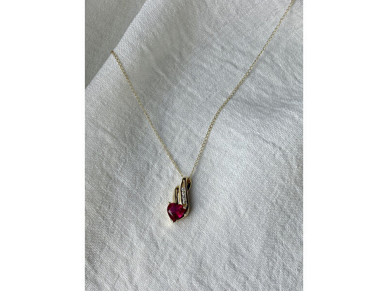 10K Yellow Gold Ruby & Diamonds Heart Chain and 49 similar items