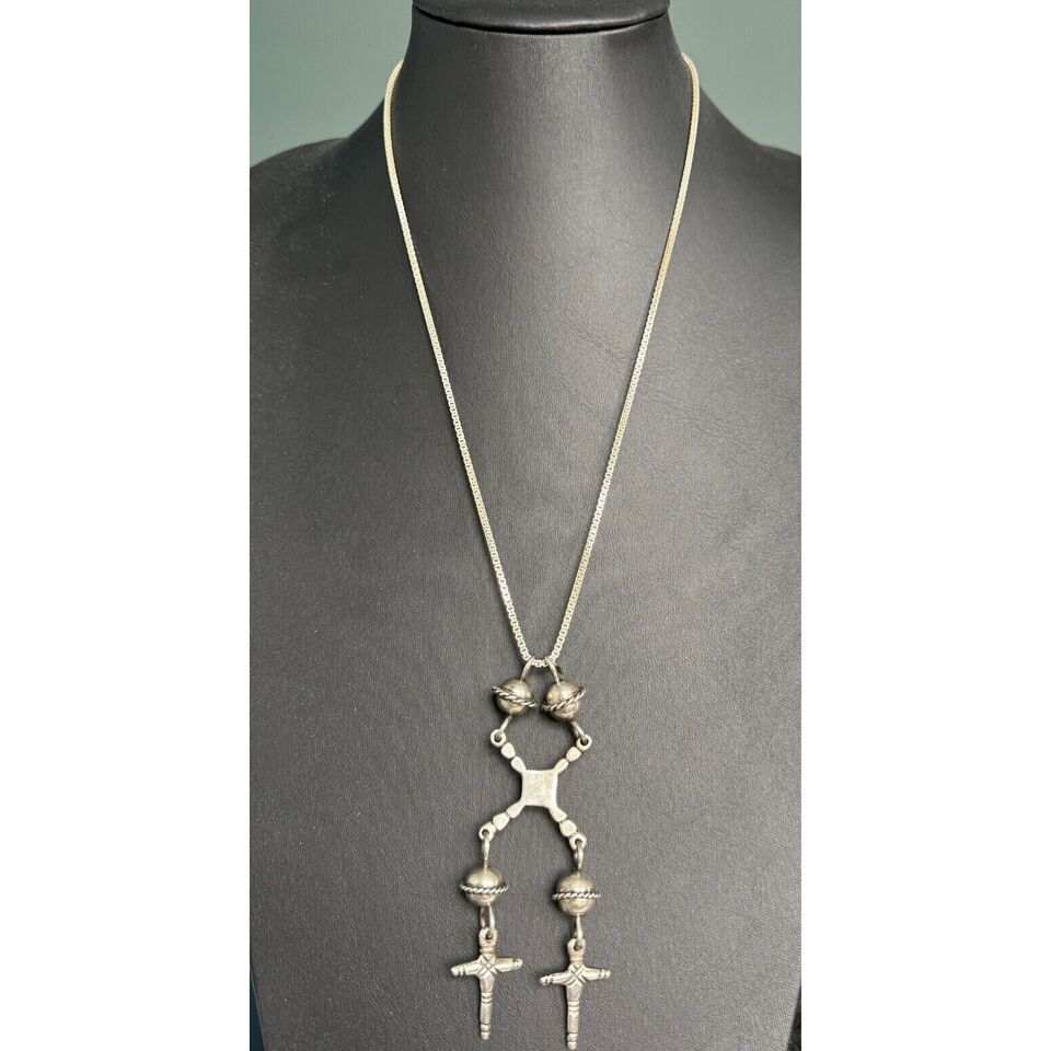 UNIQUE TAXCO 925 STERLING SILVER 2 CROSSES PENDANT NECKLACE SKY