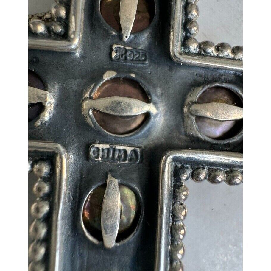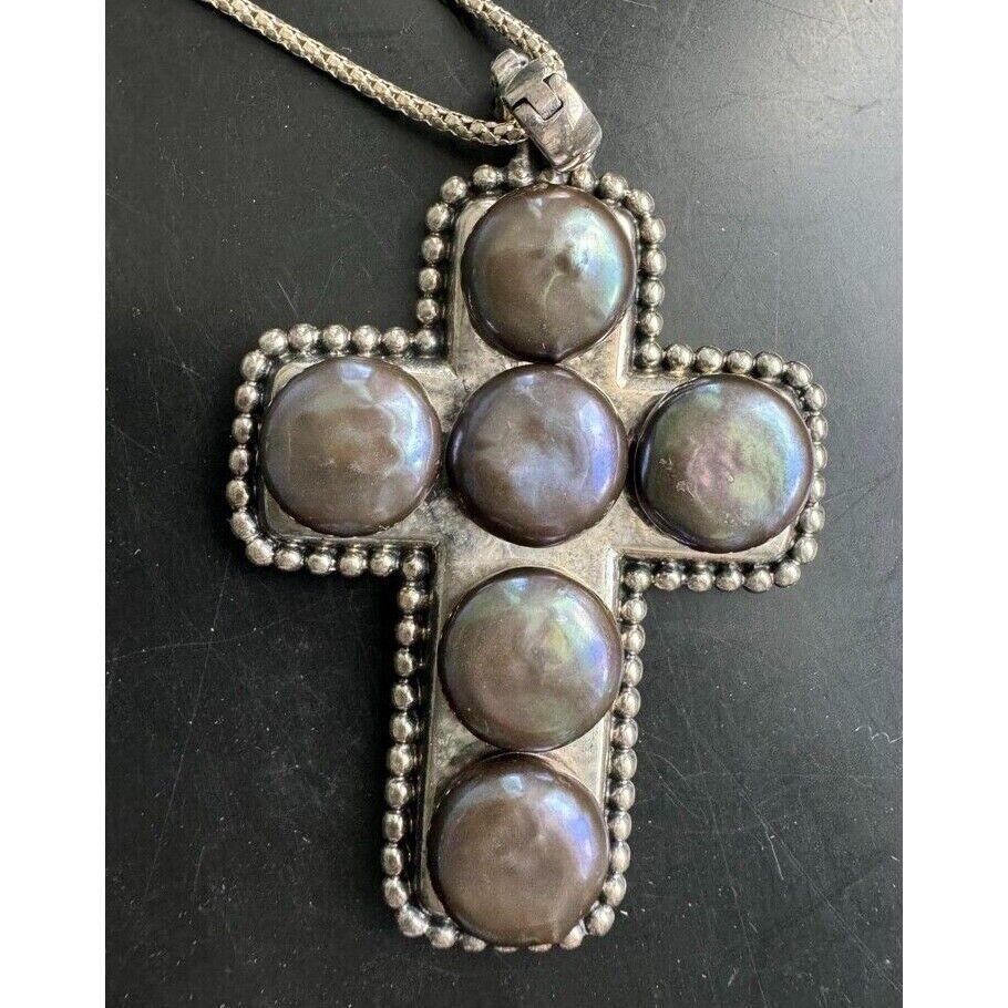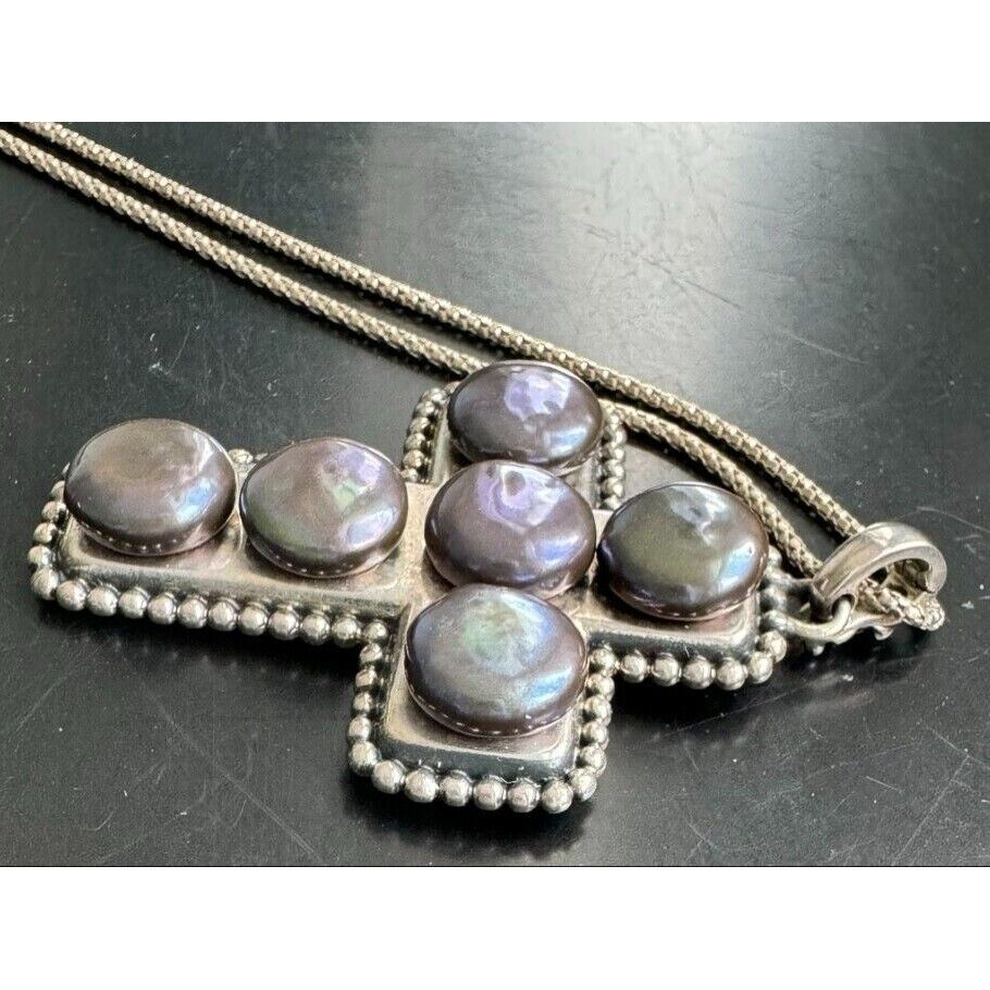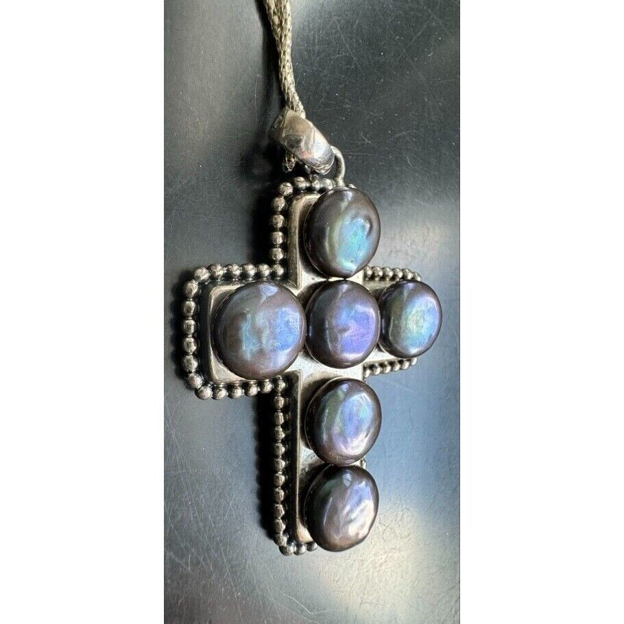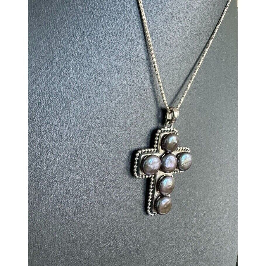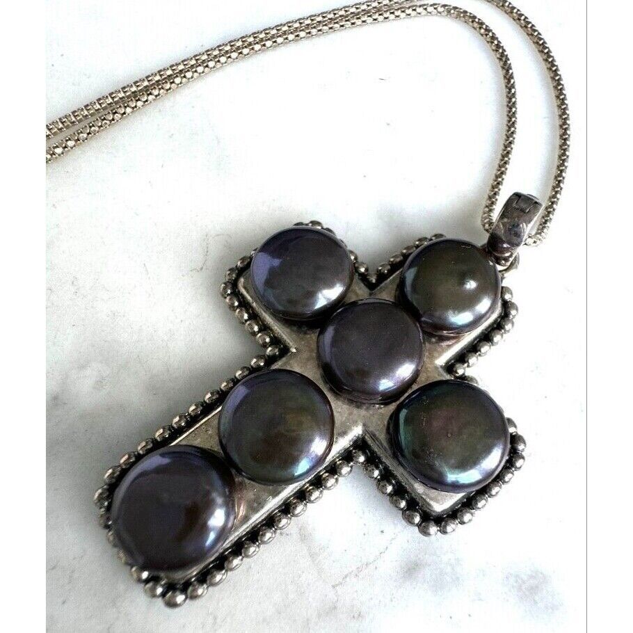 925 STERLING SILVER AND BLACK BAROQUE PEARLS CROSS NECKLACE PENDANT SKY