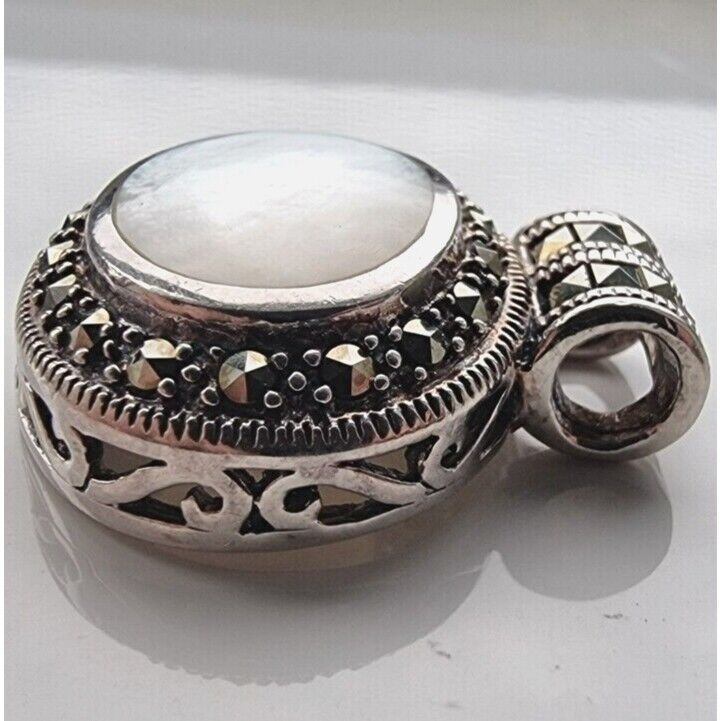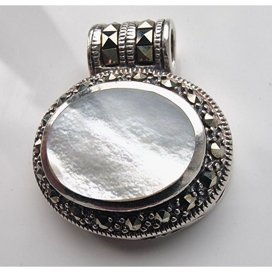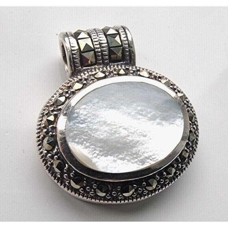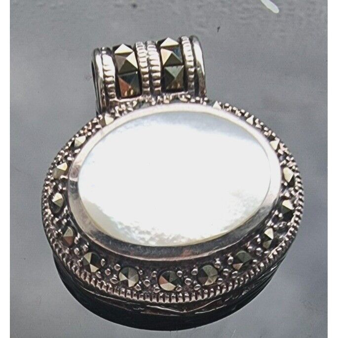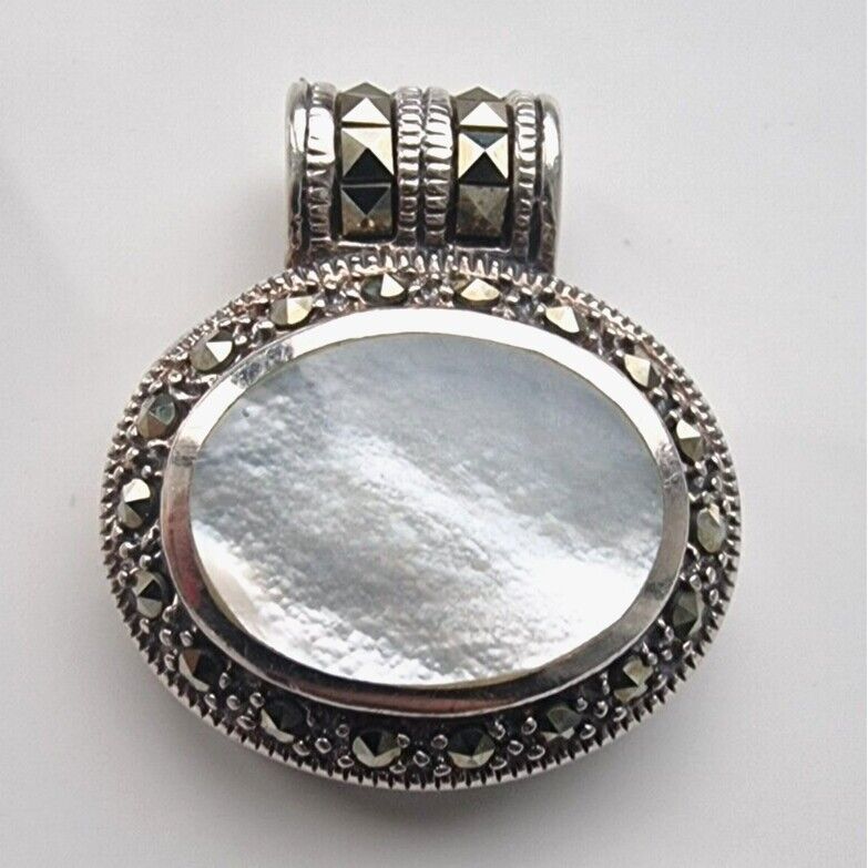 VINTAGE 925 STERLING SILVER MOTHER OF PEARL AND MARCASITES PENDANT AT