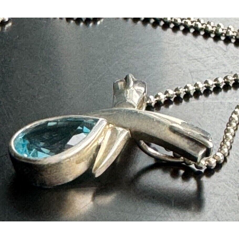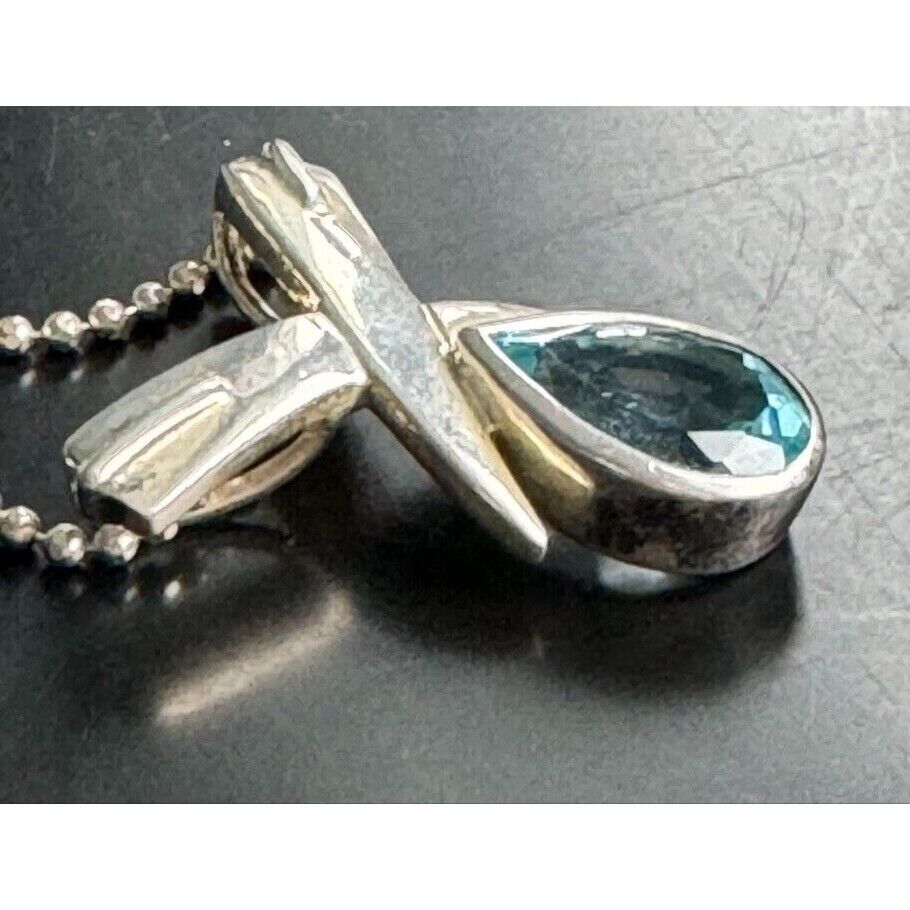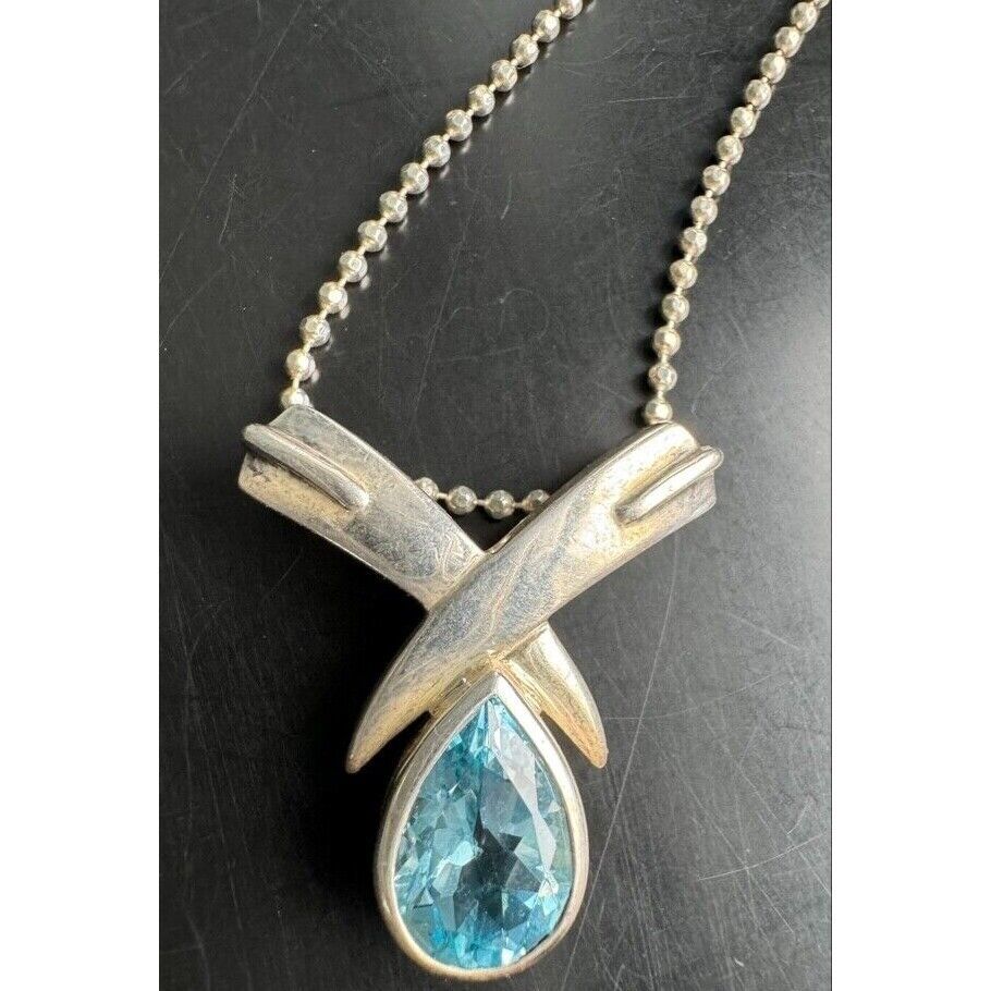 ELEGANT 925 STERLING SILVER AND BLUE TOPAZ PENDANT NECKLACE SKY