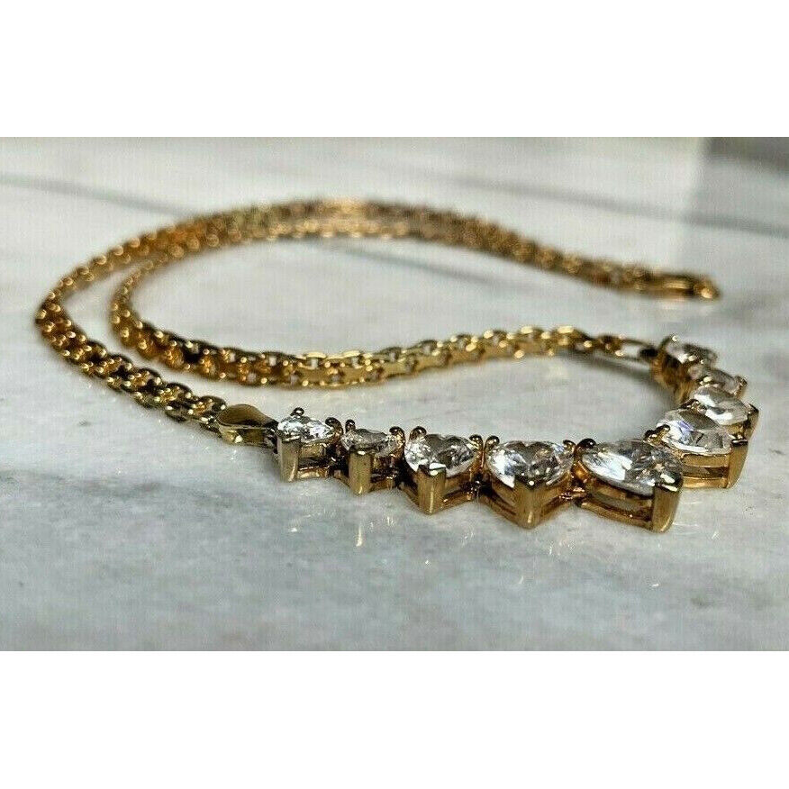 SIZE:APPROX.18'' LONG.THE NECKLACE FEATURES GRADUATED HEART SHAPED CRYSTAL CLEAR CZ'S WITH THE LARGEST MEASURING 7 x 7 mm.WEIGHT:17.6 GRAMS