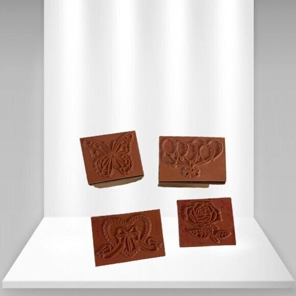 Set of 4 Vintage Assorted Design Wooden Handle Rubber Stamps.