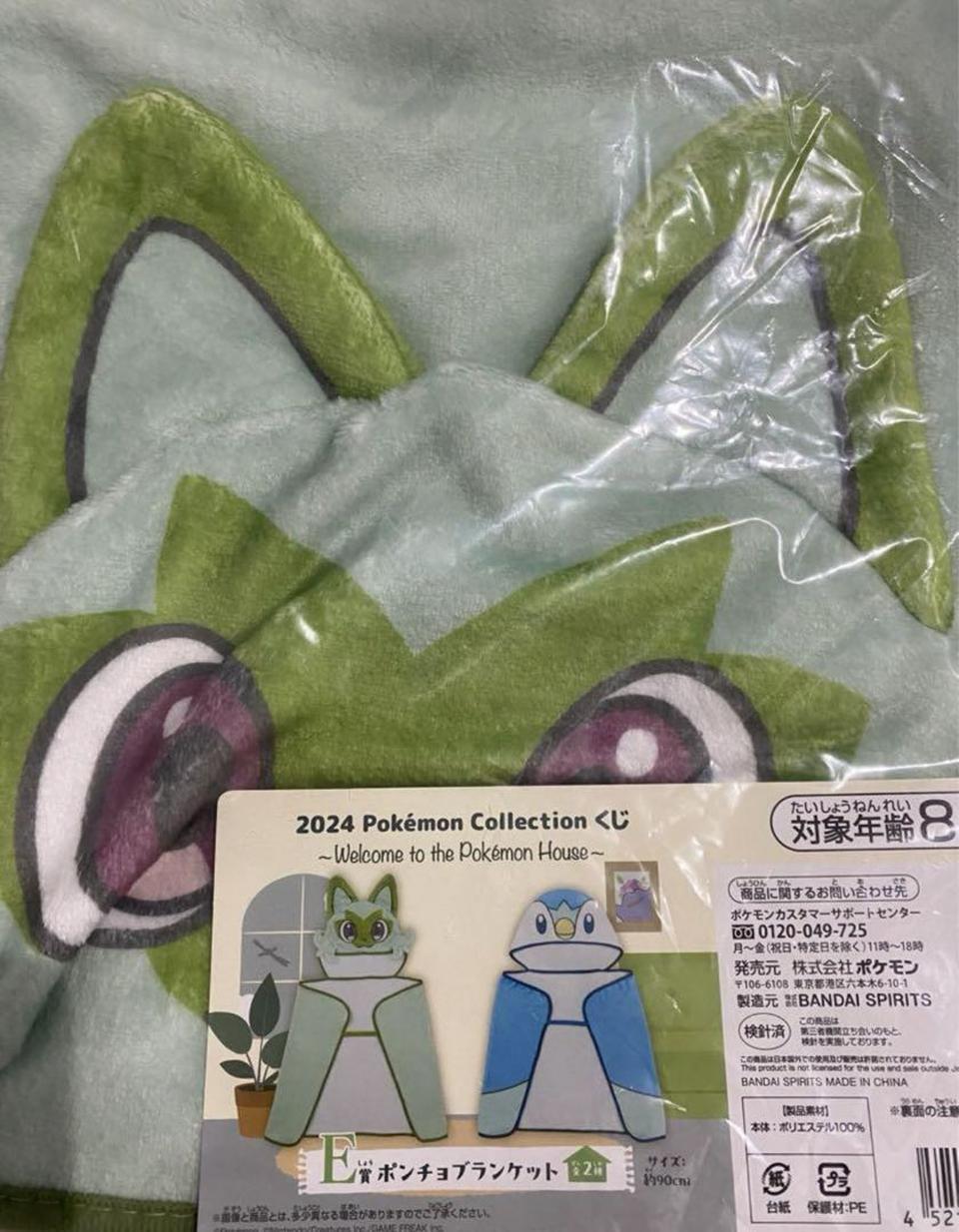 Ichiban Kuji Piplup/Sprigatito Poncho Blanket Japan Authentic