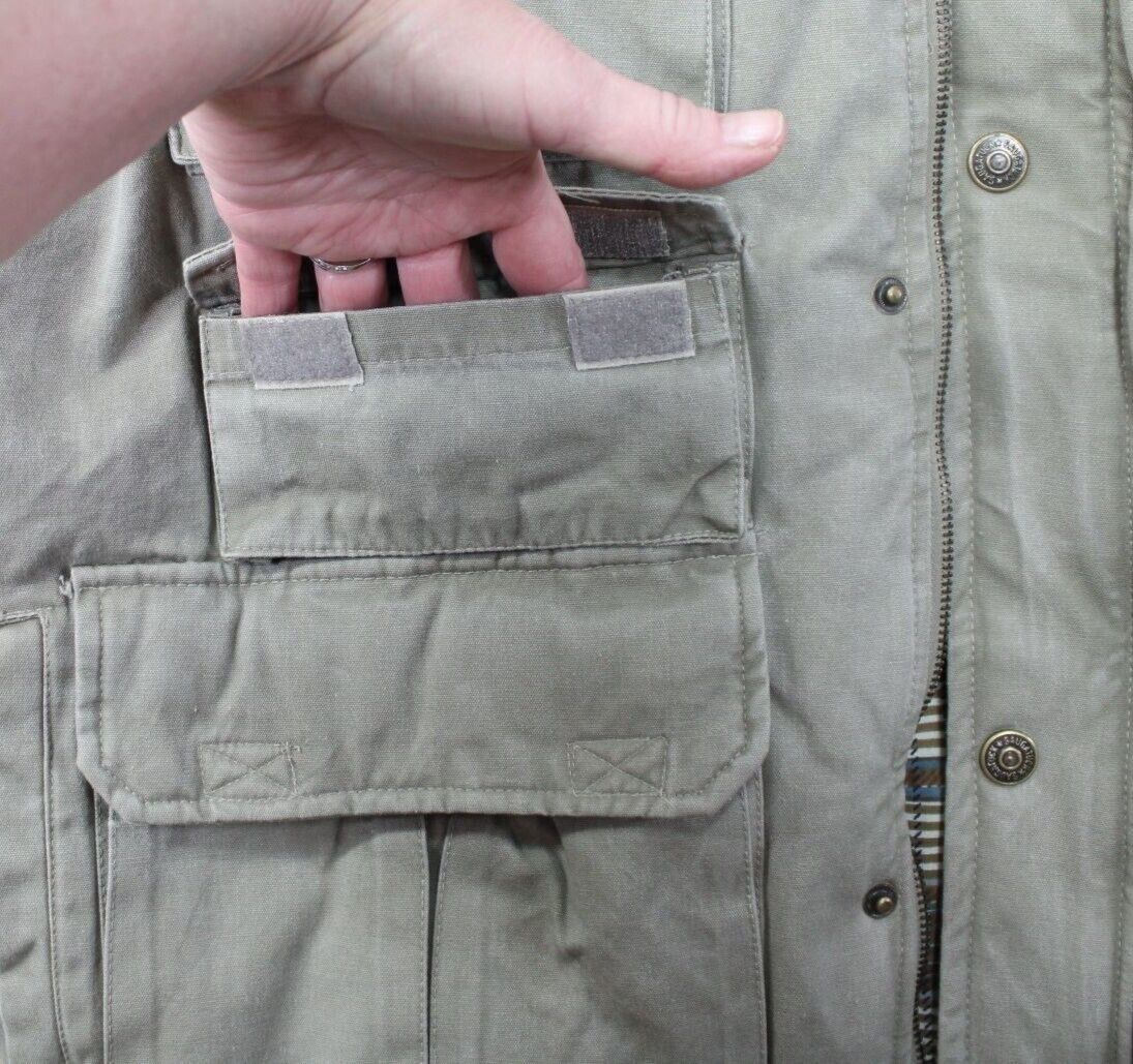 Saugatuck Mens Khaki Utility Vest XL Cotton & Polyester Blend Multiple Pockets M
