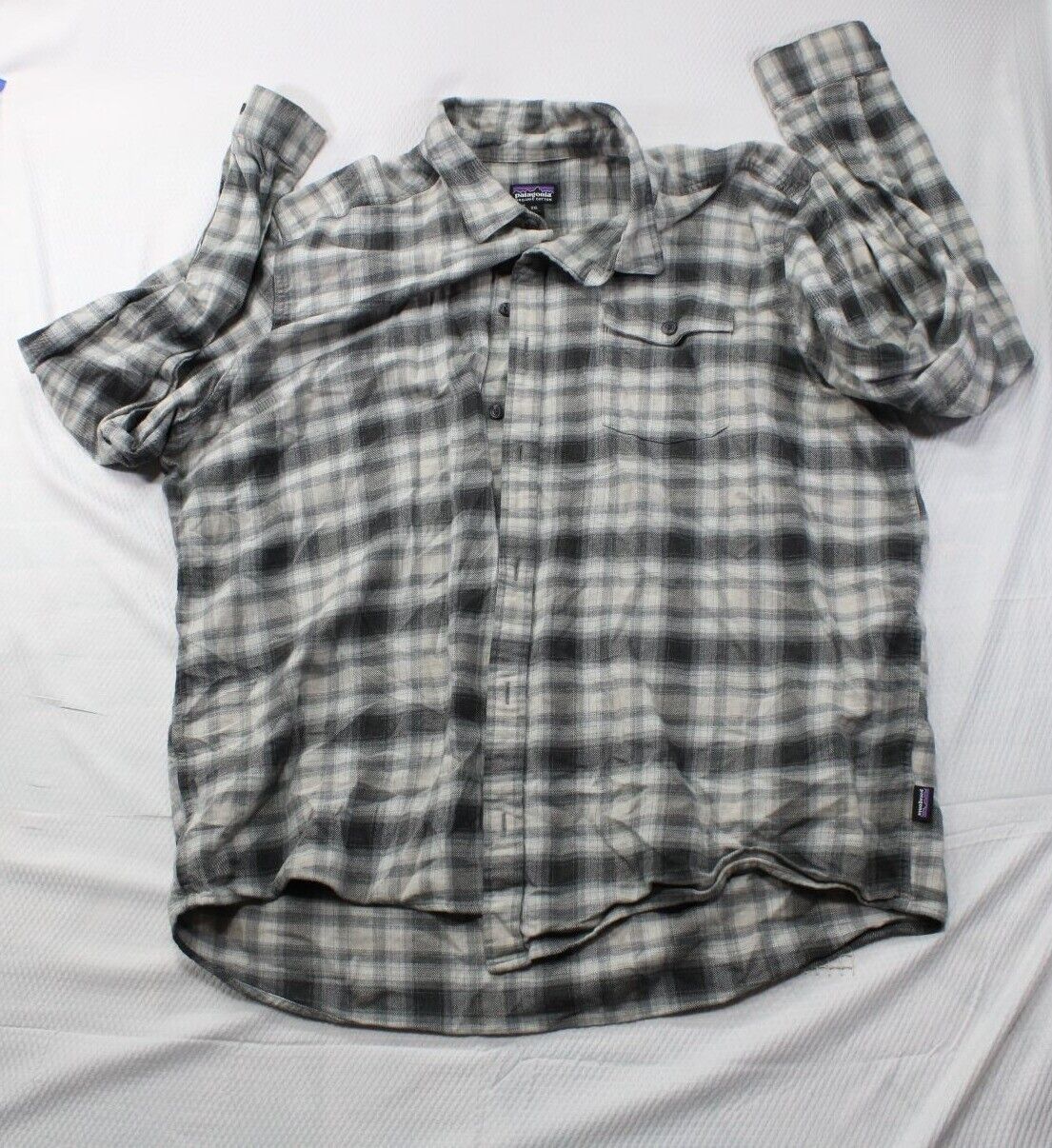 Patagonia Mens Organic Cotton Plaid Button-Up Shirt XXL Black & White