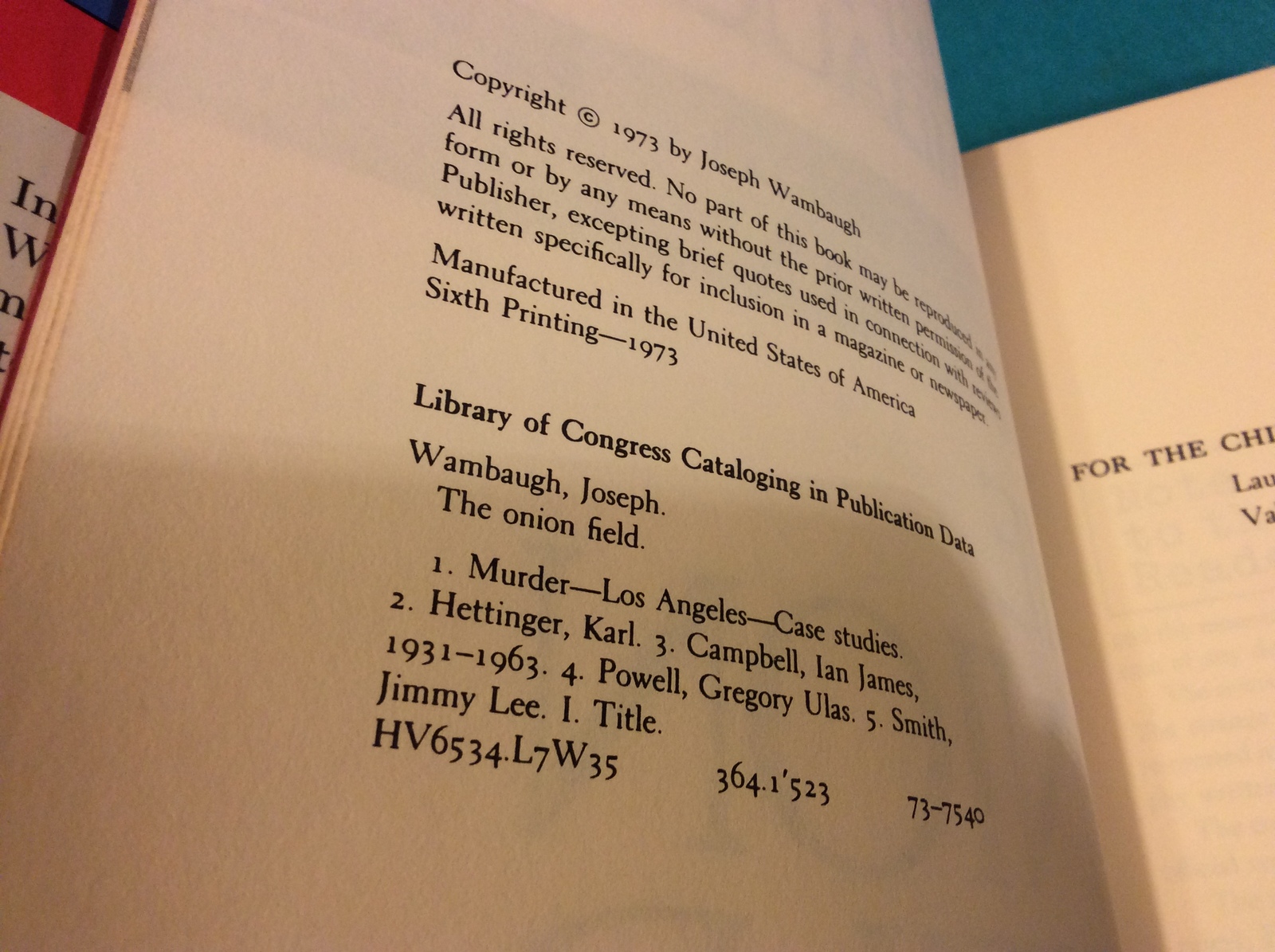 THE ONION FIELD by JOSEPH WAMBAUGH - Hardcover - FIRST EDITION SIXTH PRINTING