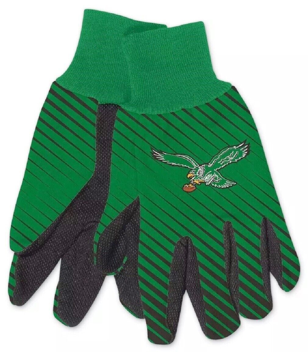 Philadelphia Eagles NFL Green Throwback Retro Utility Work Football Gloves Adult Size. Rubber Grips.