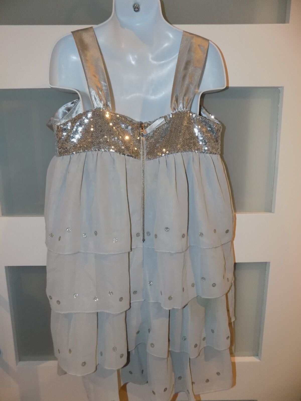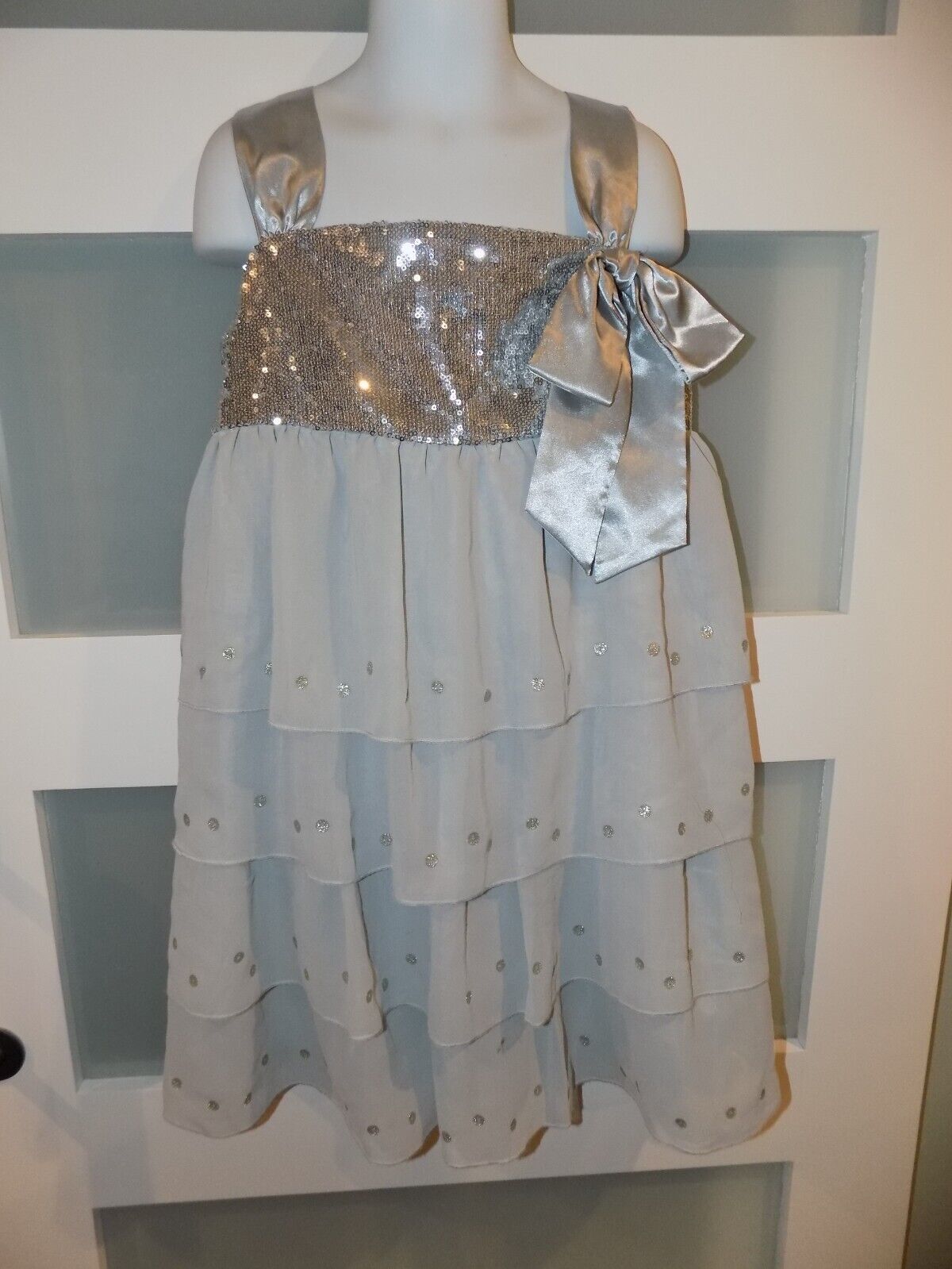 American Girl Silver Gray Sequin Shimmer Ruffle Dress Size 8 Girl's NWOT