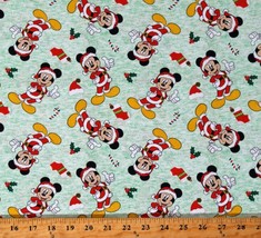 Cotton Mickey Mouse Christmas Santa Stockings Candy Canes Disney Kids Green Cotton Fabric Print by the Yard (1902-6251)