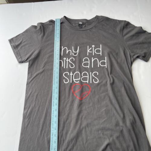 Baseball T Shirt Women Sz L Gray My Kid Hits & Steals Hearts Mom Summer League