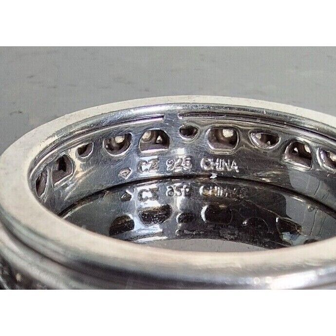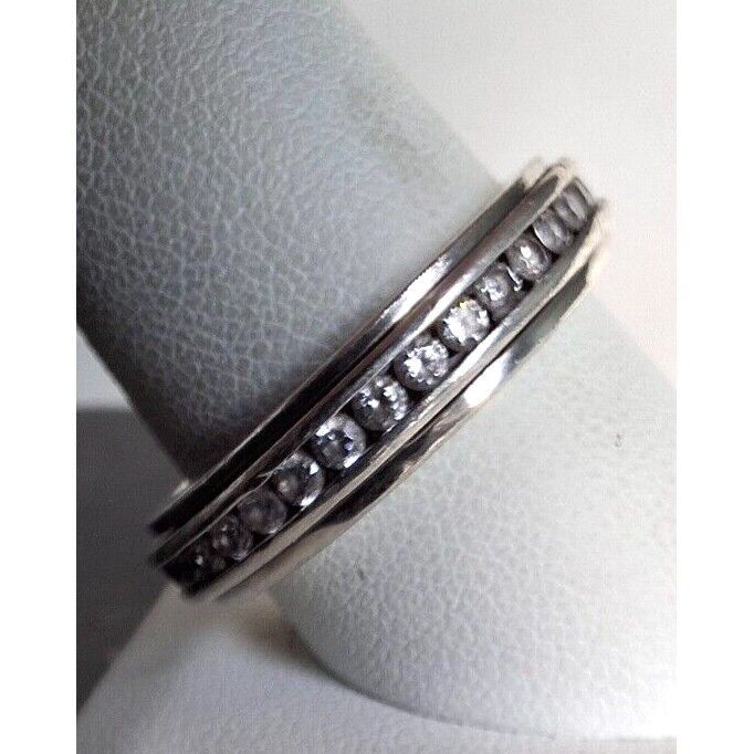 MEN'S 925 STERLING SILVER AND COLORLESS GEMS SPINNER BAND RING SIZE 9.75 SKY