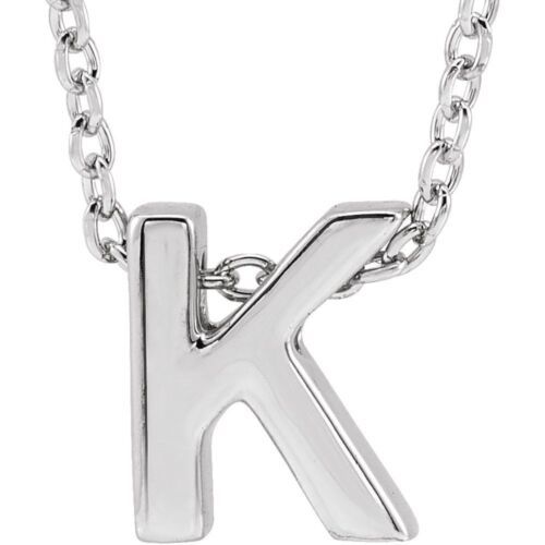14K White Gold 0.31" Initial Letter K Pendant Slide Adjustable 16-18" Necklace