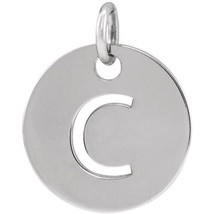 Solid Genuine 14K White Gold Initial C Disc 0.39" Pendant for Men or Women