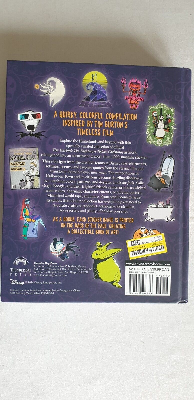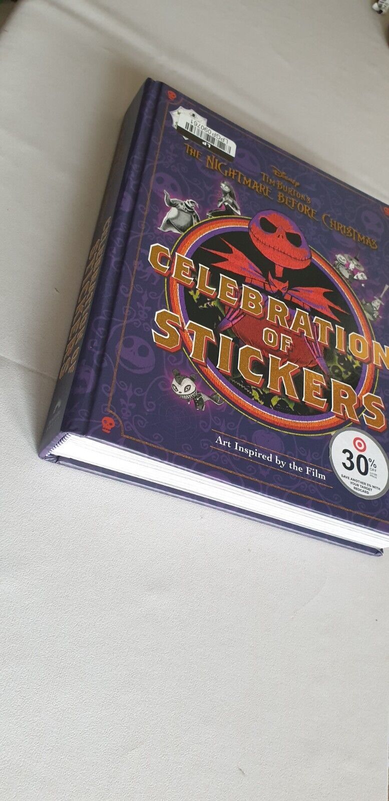 Disney Tim Burton's The Nightmare Before Christmas Celebration of Stickers Book The product is a sticker book titled "Disney Tim Burton's The Nightmare Before Christmas Celebration of Stickers Book," part of the Collectible Art Stickers series. It contains 240 pages of stickers related to papercrafts and activities inspired by the movie. Published by Printers Row Publishing Group in 2024, this hardcover book is intended for young adults and adults who enjoy games, activities, and crafts.