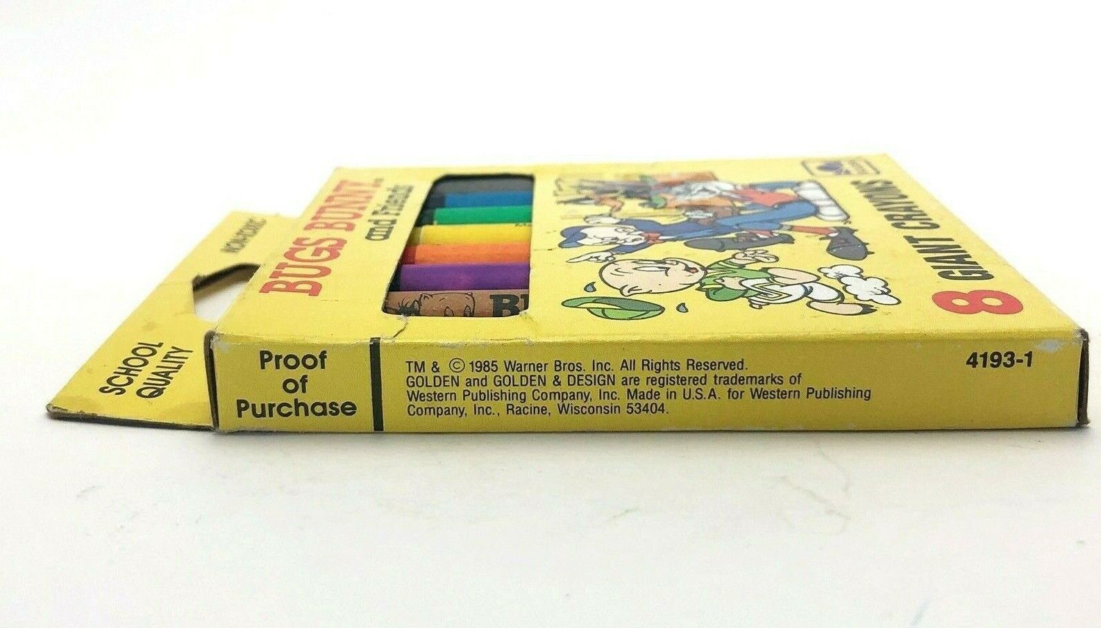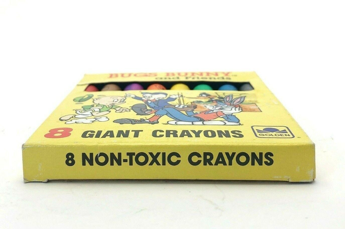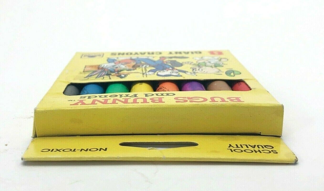 Flashback to the 80s with this set of Giant Crayons by Golden, featuring your favorite Looney Tune Characters. Bugs Bunny and all his Friends. Comes with 8 unused crayons.