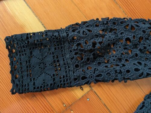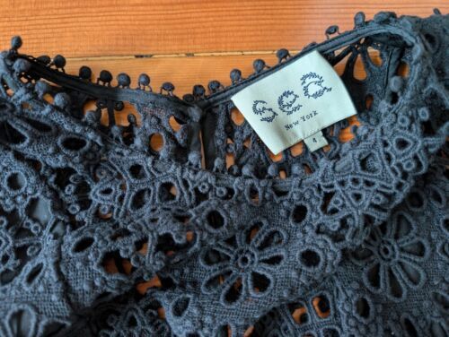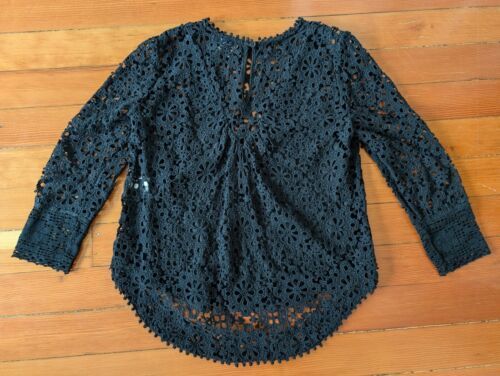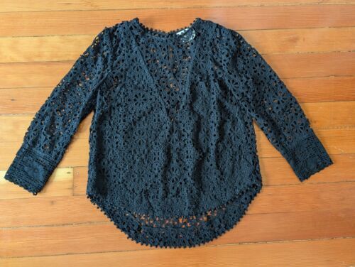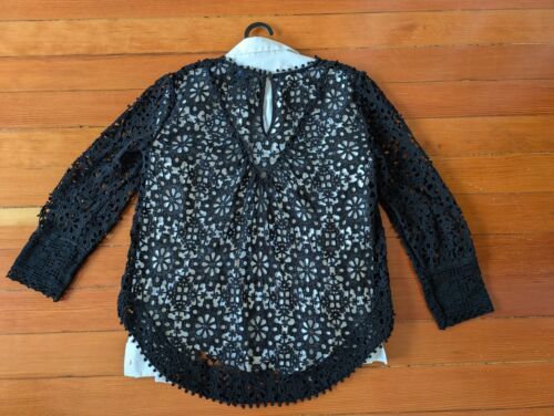 Sea New York Crochet Lace Top - Round V-neck Sheer Black - long sleeve 4 small