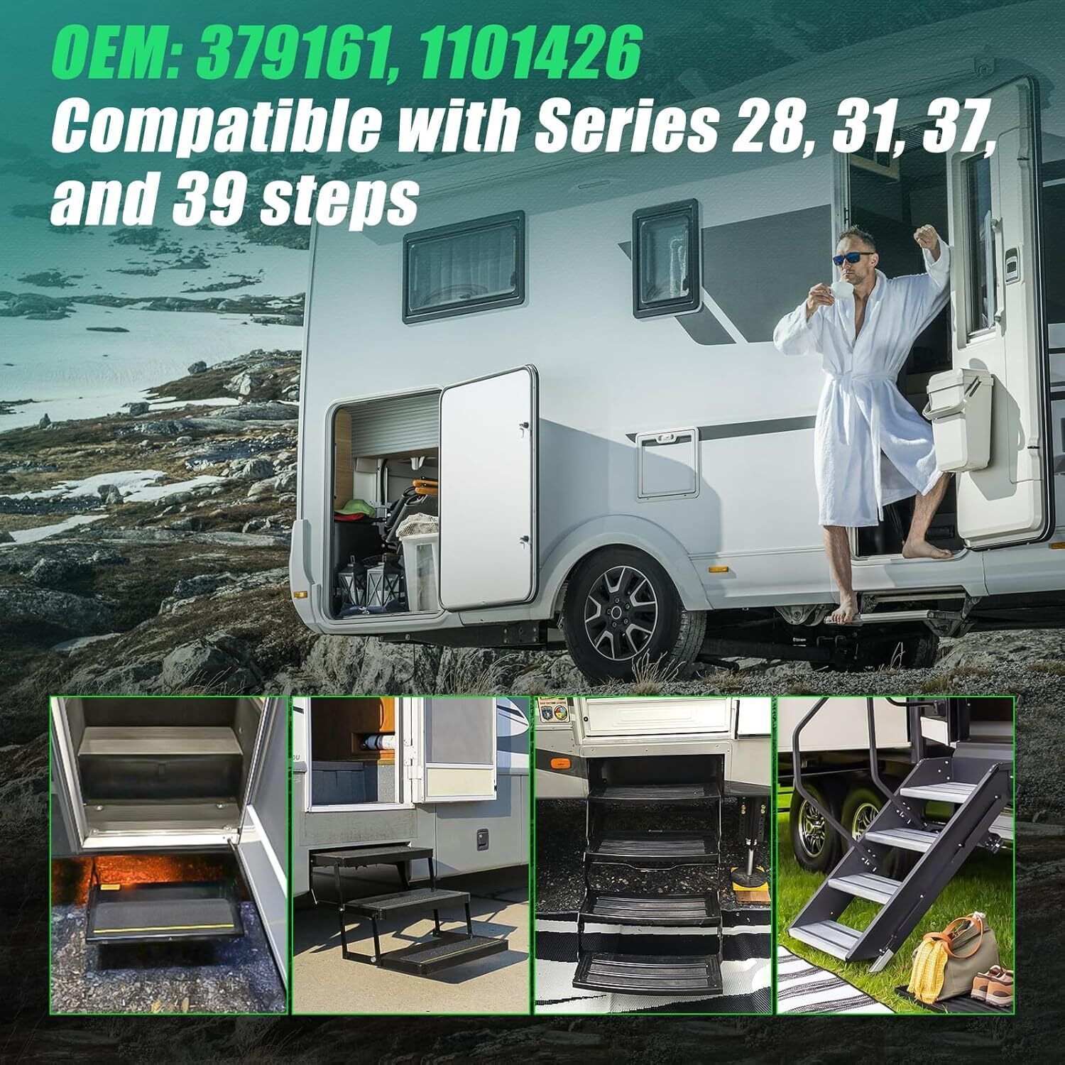 Compatibility Part Number - RV Gear Box Linkage Fit For Lippert Kwikee Electric RV Steps 28, 31, 37 and 39. Replace Part Number: 379161, 1101426, 676061 214-1001, 2141001, 1101428, 379147. Premiun Quality - Our Gear Box Linkage and Motor heavy-duty steel construction with corrosion-resistant zinc-plating and moisture resistance. Extended lifespan and fade resistance, this Gear Box Linkage and Motor reliably addresses your concerns. Reliability and Durability - The Gear Linkage Assembly Upgraded and more curved linkage can ensure better and spare transmission space. The Gearbox is completely enclosed to prevent weather damage to components. Replace the old Gearbox Linkage and enjoy your travel time! Practicality - RV Stair Entry Step Motor attaches to the linkage underneath step mounting plate to provide power for extension. It can help the step automatically extend when you open the rv door and retract when you close the door. With an automatic shut-off function, if an obstacle is encountered during the stretch, the steps will be automatically retracted. OE Specifications - The Gear Linkage with B and Motor assembly can fit perfectly. There will be an installation instruction in our package, ready to install out of the box. Please confirm the vehicle information before placing an order to avoid unnecessary costs due to wrong purchases.