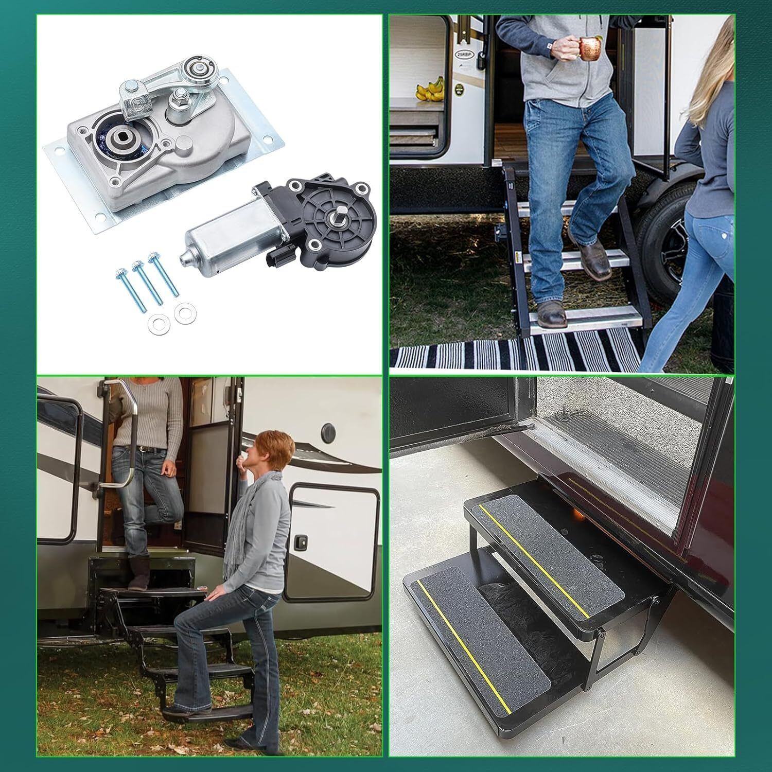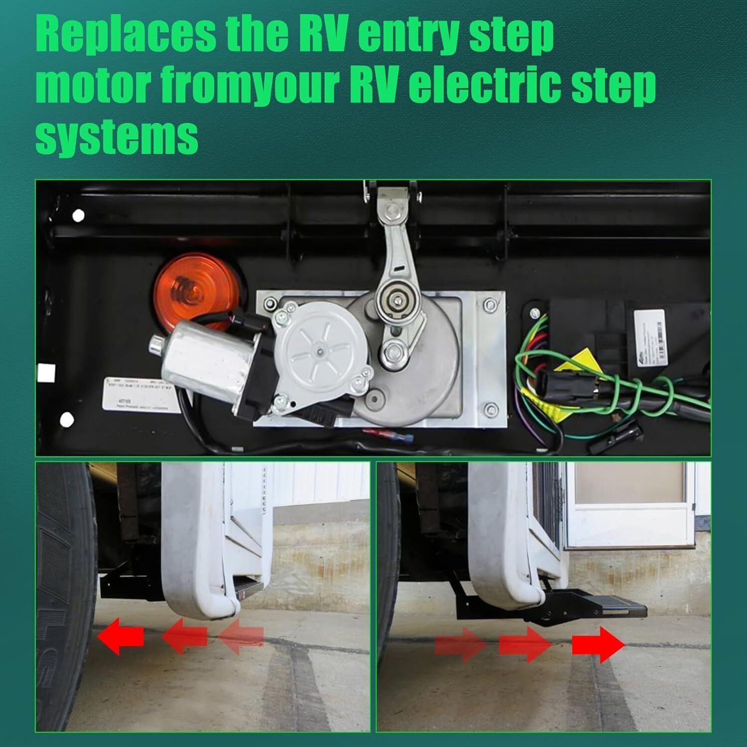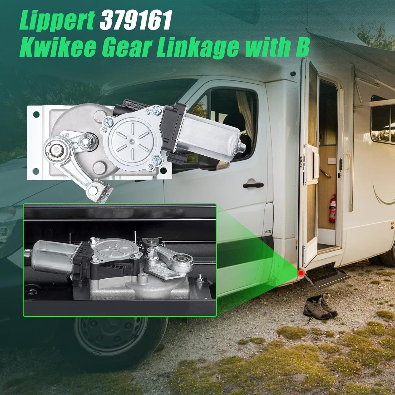 379161 RV Gear Box Linkage with Motor Compatible with Lippert Kwikee Electric RV Steps 28, 31, 37 and 39 Series Electric Steps Camper Steps Gear Box Linkage with B Power Kit Replace 676061 1101426