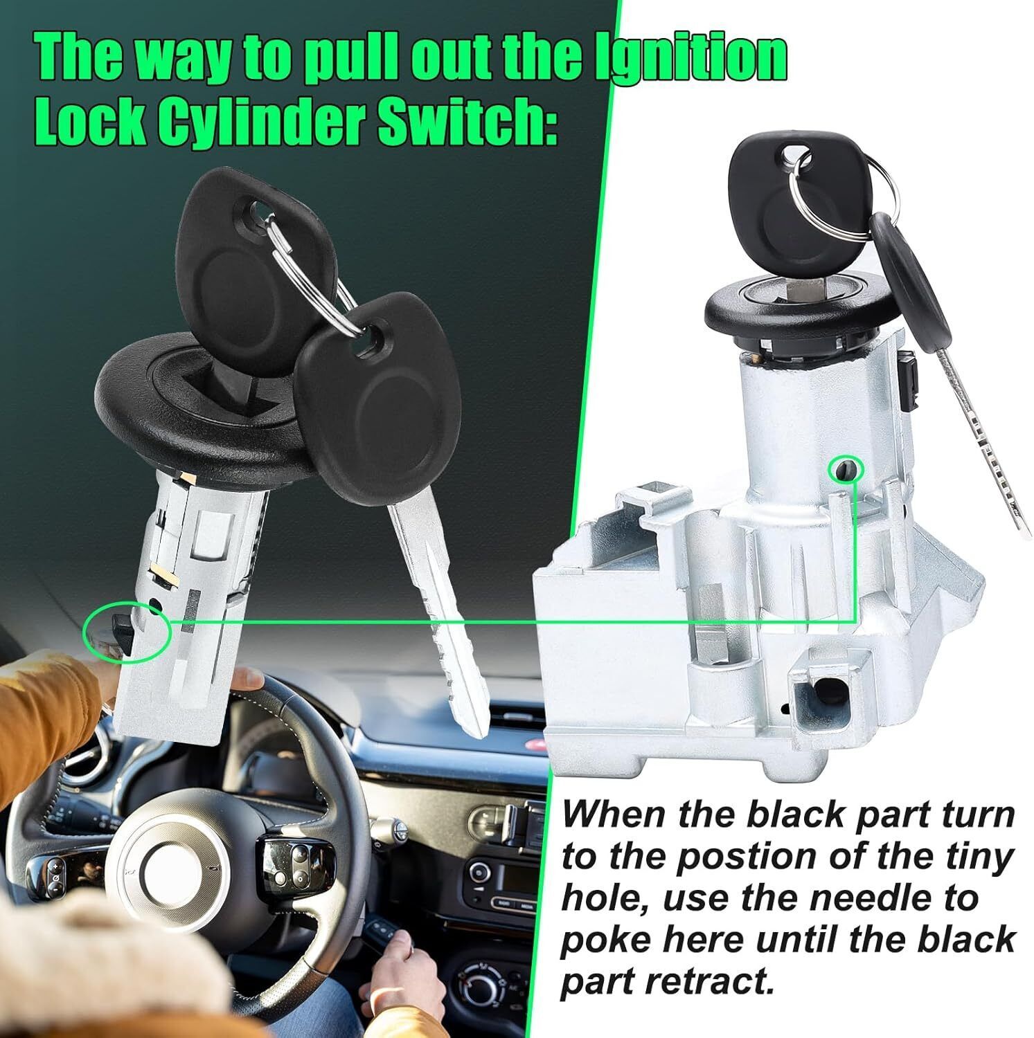 High Quality: Ignition Lock Cylinder Switch Ignition Lock Cylinder Housing Ignition Assembly composed of high-quality metal, greatly increase the service life. Go through vehicle try-on testing, perfect fit your car. Direct replacement for an inoperable original equipment Lock Housing. Restores security system to proper operation, turns off flashing security light. Better experience at the beginning Fitment: 2000-2009 Chevy Silverado 1500 2500 3500 HD Classic SSR Avalanche 1500 2500 Blazer S10 Pickup Suburban 1500 2500 Tahoe Trailblazer EXT. 2000-2009 GMC Sierra 1500 2500 3500 HD Classic Envoy XL XUV Jimmy Sonoma Yukon XL 1500 2500. 2004-2007 Buick Rainier. 2002-2006 Cadillac Escalade EXT ESV. 2003-2007 Hummer H2 Ignition Assembly. 2000-2004 Oldsmobile Bravada. Replaces US-312L Ignition Switch, 924-713 Ignition Lock Cylinder Housing Issue: Steering column jammed or Ignition Switch not working? This Ignition Lock Housing is a direct replacement for an inoperable original equipment Lock Housing to help restore Ignition Lock functions. When the black part turn to the position of the tiny hole, use the needle to poke here unit the black part retract. Simply replace this Ignition Assembly which is a direct replacement for an inoperable original equipment Lock Housing to help restore Ignition Lock functions Automotive Replacement Ignition Starter Switches: KUTTOLE's Ignition Lock Housing includes a high-quality passlock sensor that gets your vehicle up and running after a passlock sensor failure. Replacement reestablishes communication between the Ignition Lock Cylinder and the vehicle's theft deterrent module. This Ignition Set is the exact OEM design, which not only ensures a sensitive and rapid ignition of the car, but also greatly increases the service life After-sales Service: The original Ignition Switch come on your vehicle experience motor wear over time, and that excessive wear will causes them to sticking and fail. The Ignition Lock Assembly is 100% rigorously inspected and tested before shipping, establish strict quality control standards to replace your defective Key Cylinder. Please check the part number to confirm the compatibility before purchase