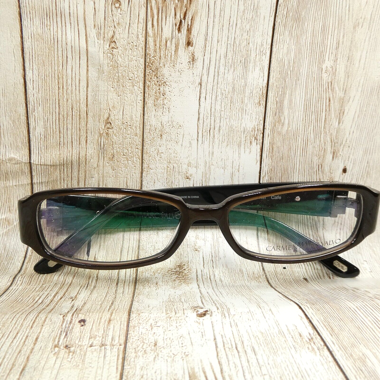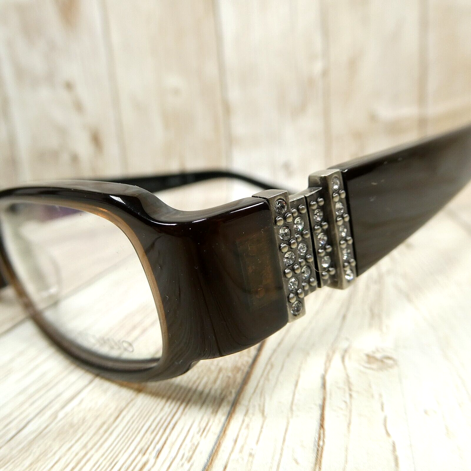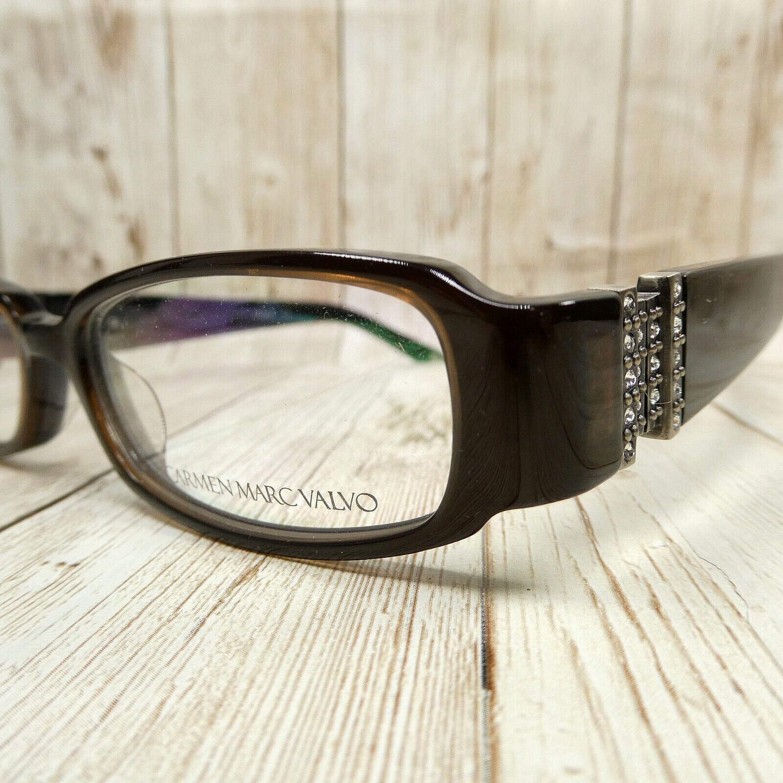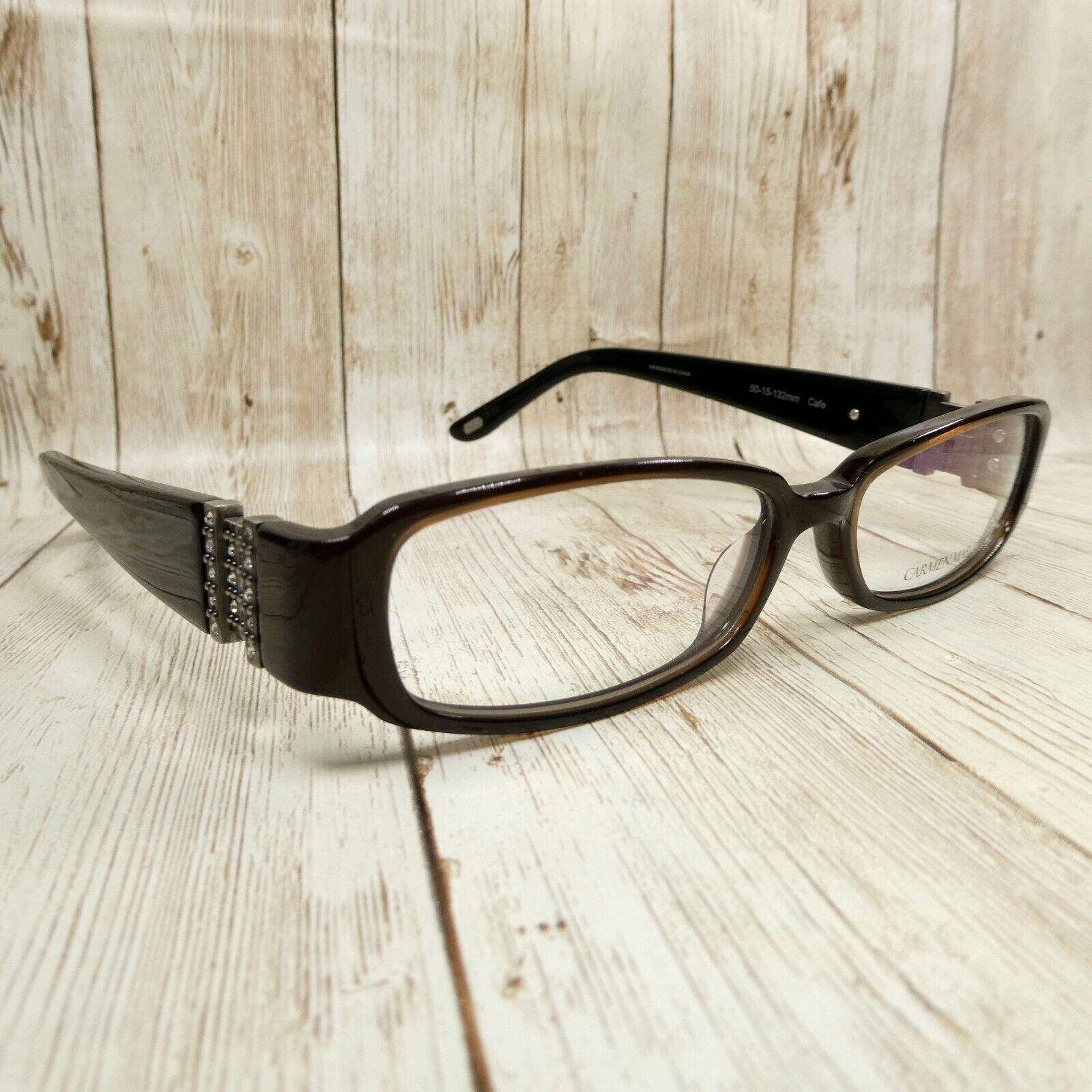 Up for sale: Carmen Marc Valvo Dark Brown Rectangular Eyeglasses FRAMES with Crystal Accents - Viviana Cafe, Size: 50-15-132