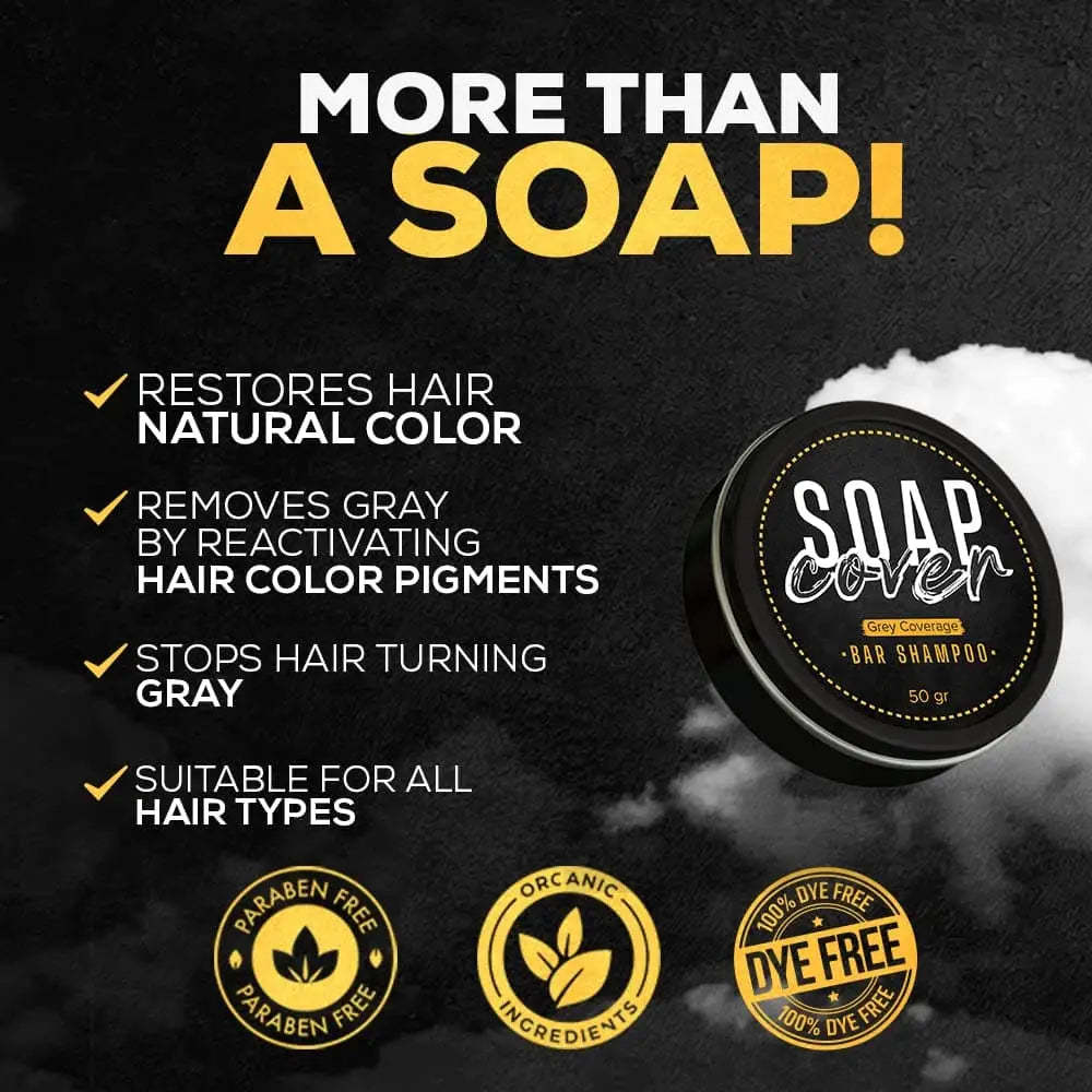 SoapCover, Gray Hair Coverage Soap is a revolutionary hair care product that promises to help you get rid of gray hair without the use of harsh chemicals. This pressed bar of soap is designed to target only the gray hair on your head, beard or eyebrows, leaving your natural hair color unaffected. With its all natural, dye-free formula, SoapCover is a safe and effective way to prevent gray hair growth with regular use.