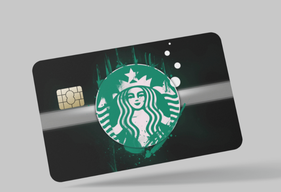 STARBUCKS , 2 pc credit card skin & DEBIT CARD,TROLLEY & GYM,STICKER