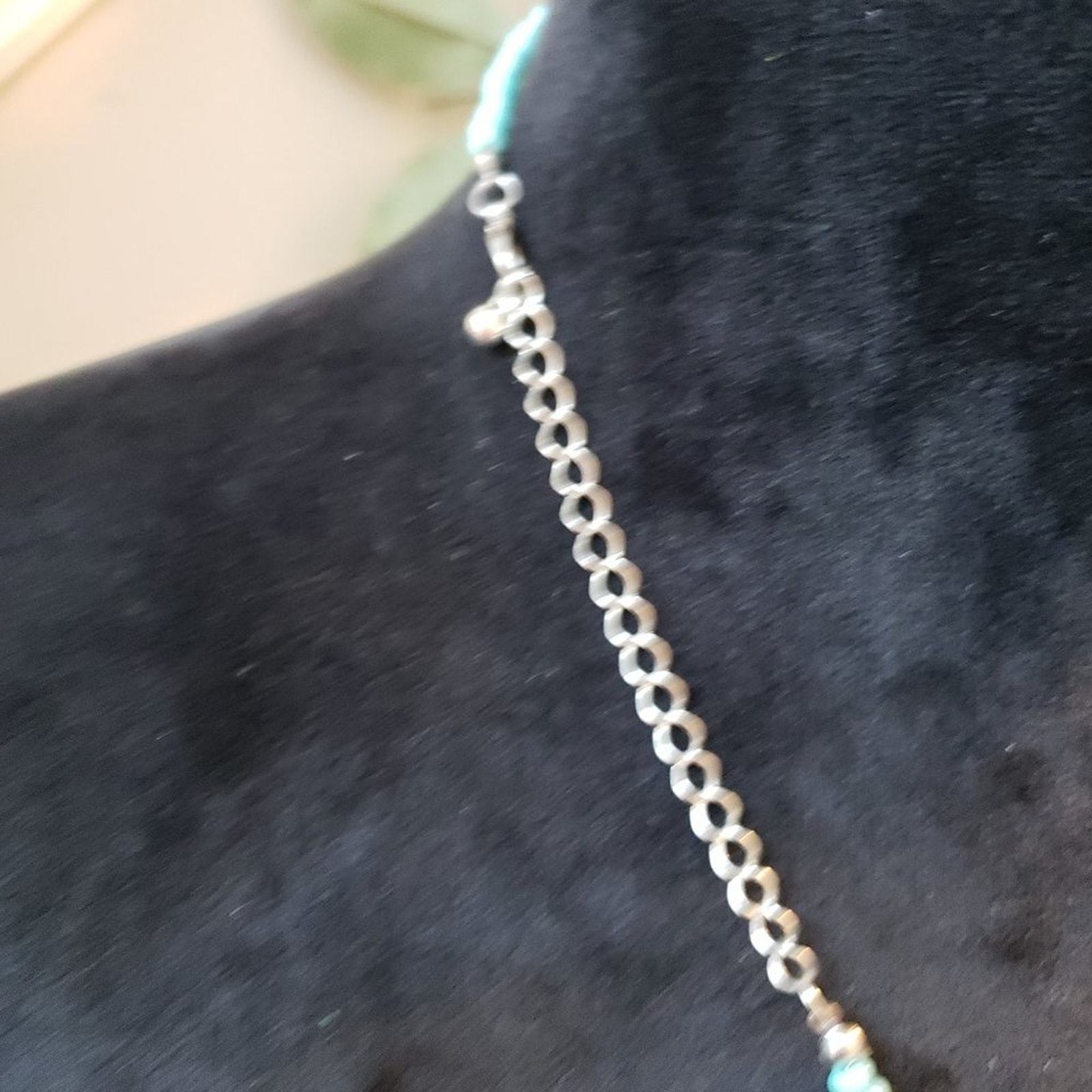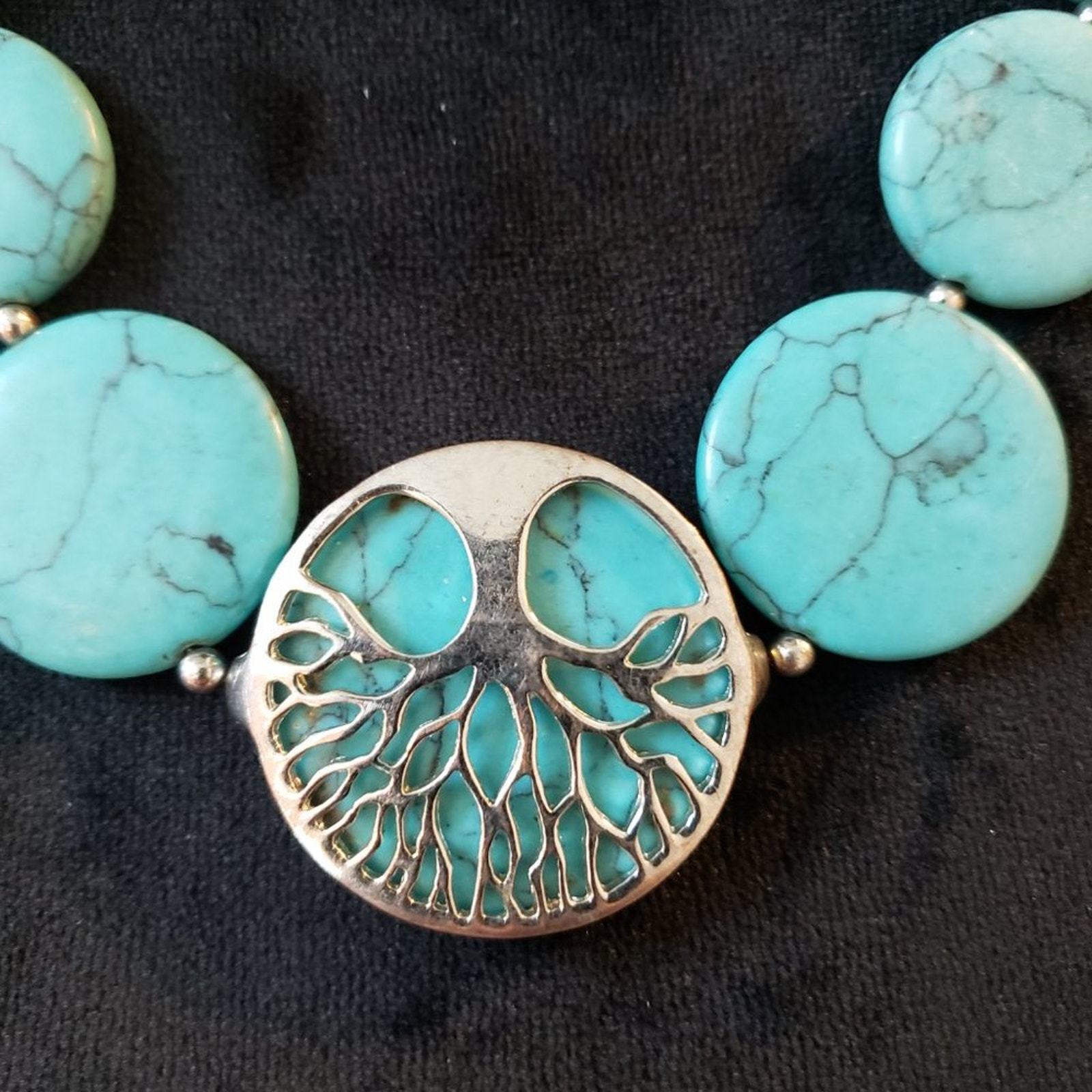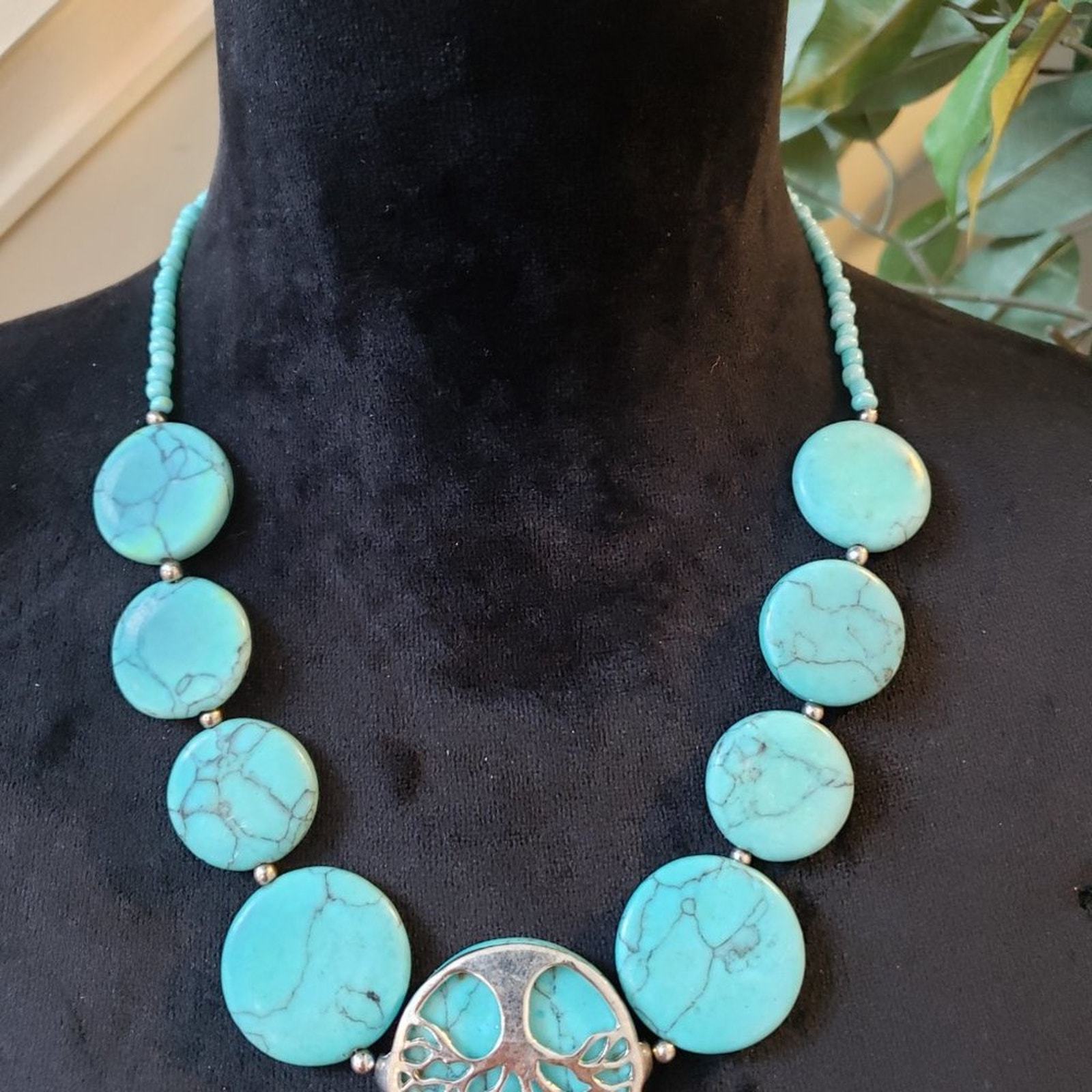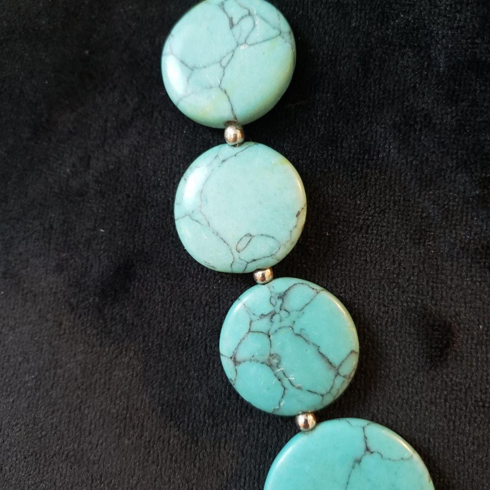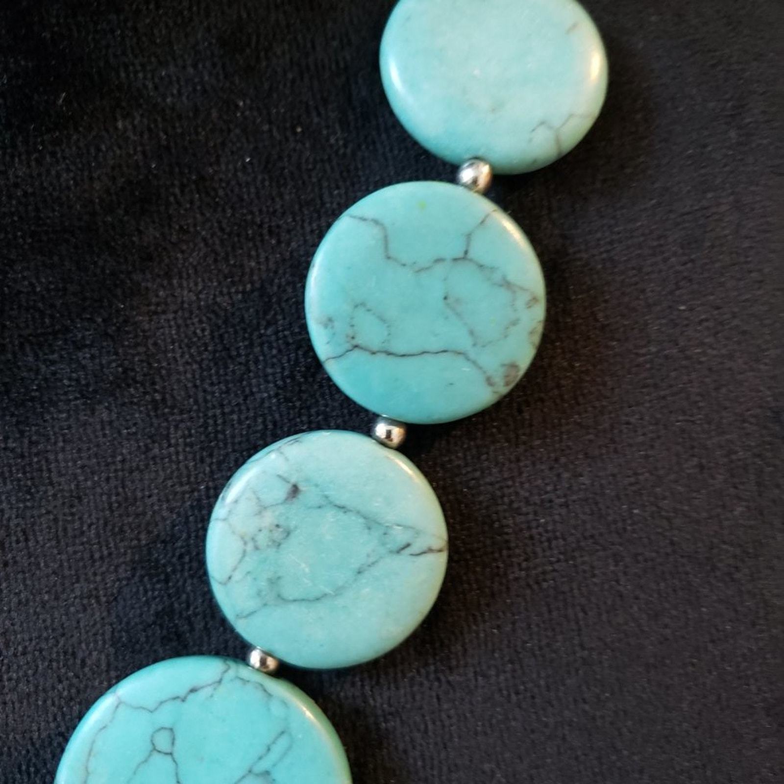 Womens Fashion Turquoise Magnesite Puff Coins Collar Necklace with Lobster Clasp.